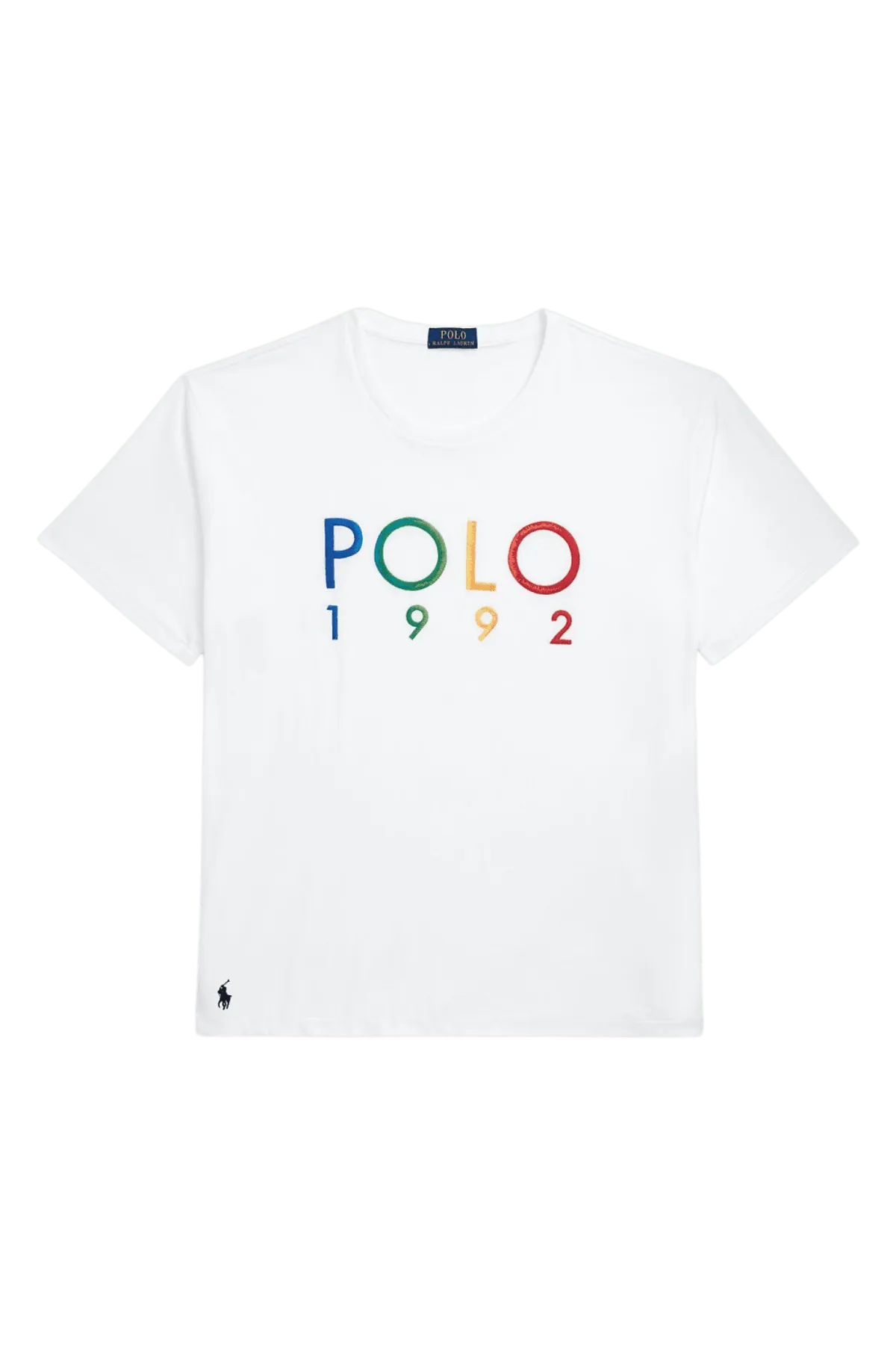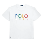 En la parte delantera de esta camiseta de algodón aparece Bordado en hilo de colores el lema POLO 1992.
