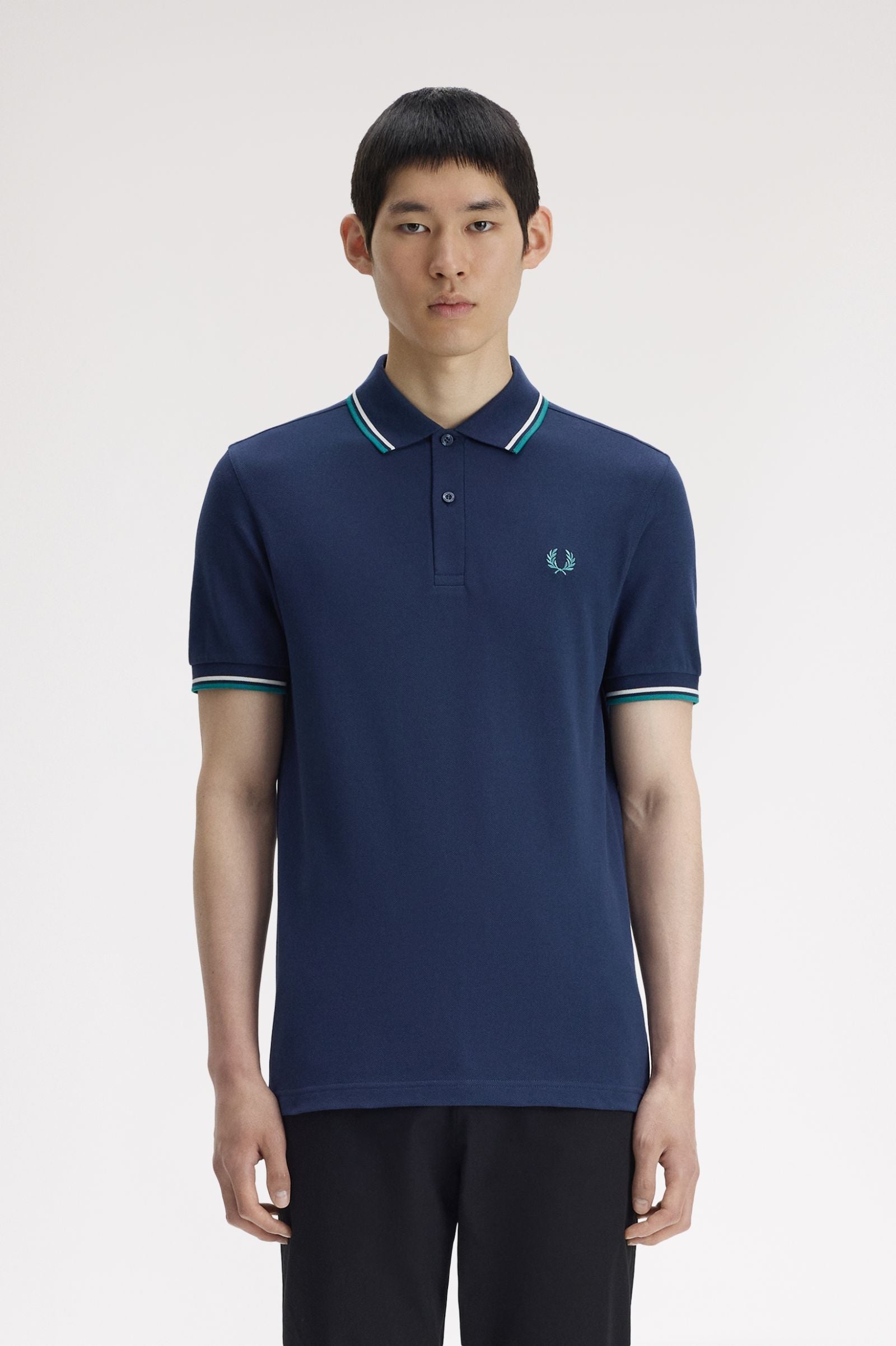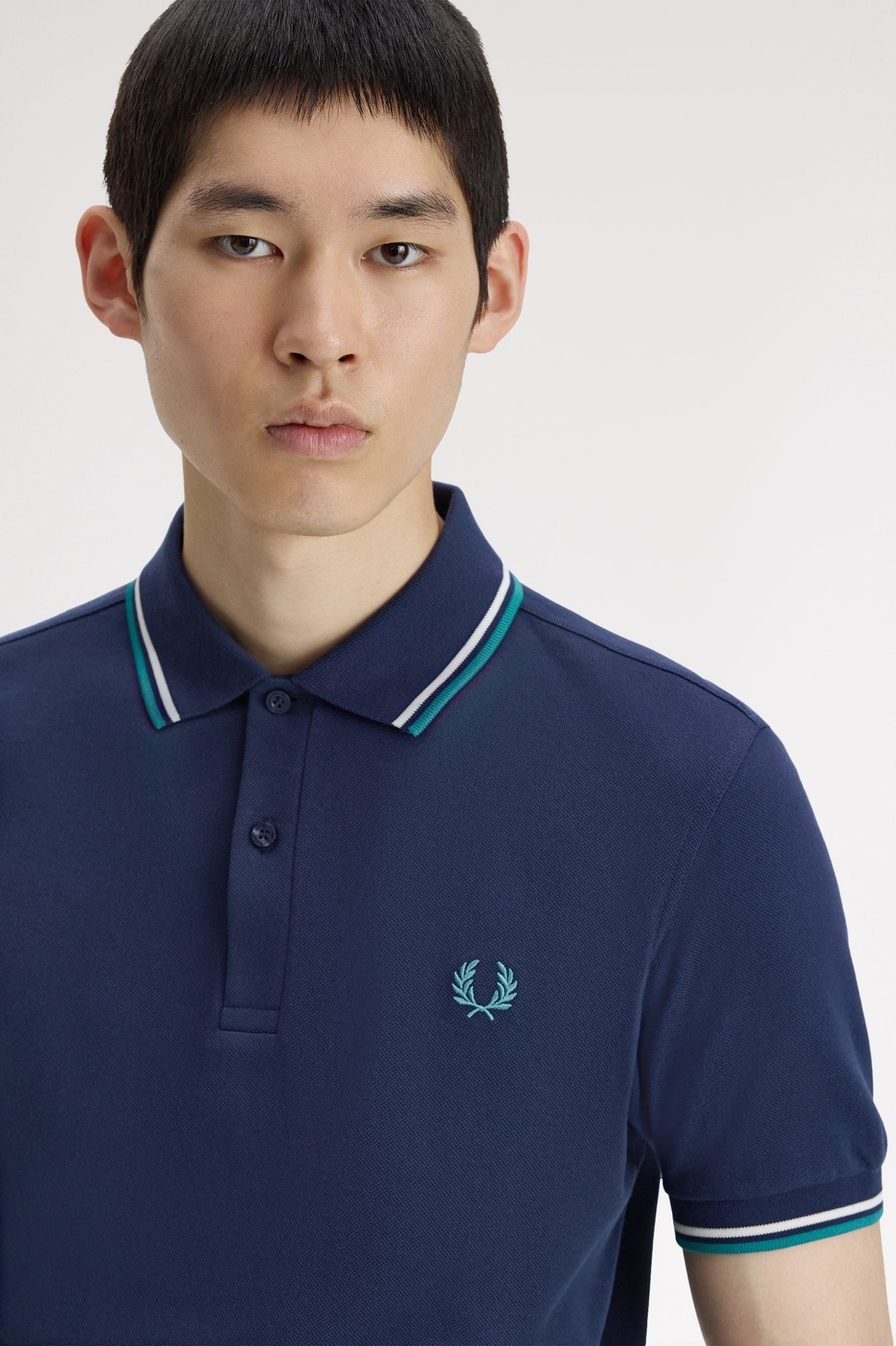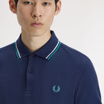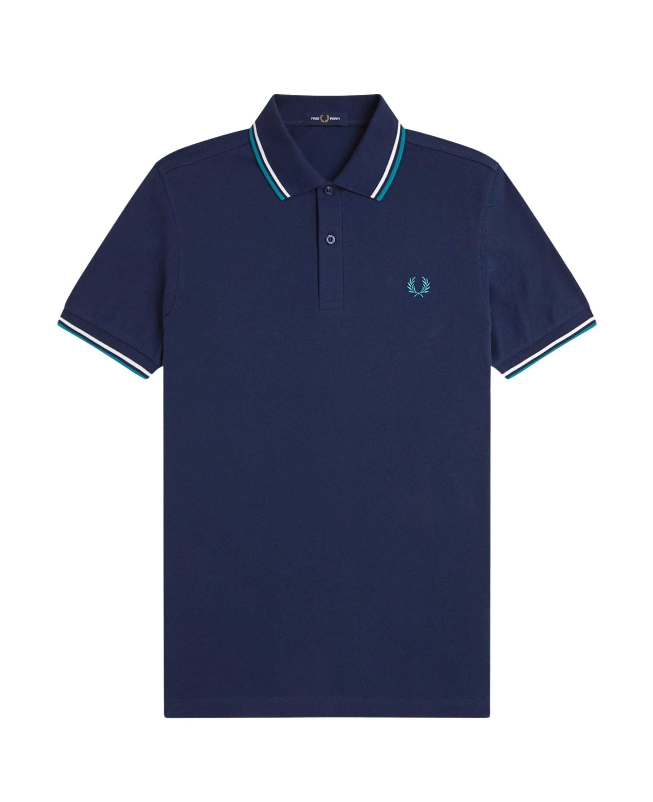 Polo FRED PERRY M3600 Azul Tenis / Blanco Nieve / Verde Menta intenso