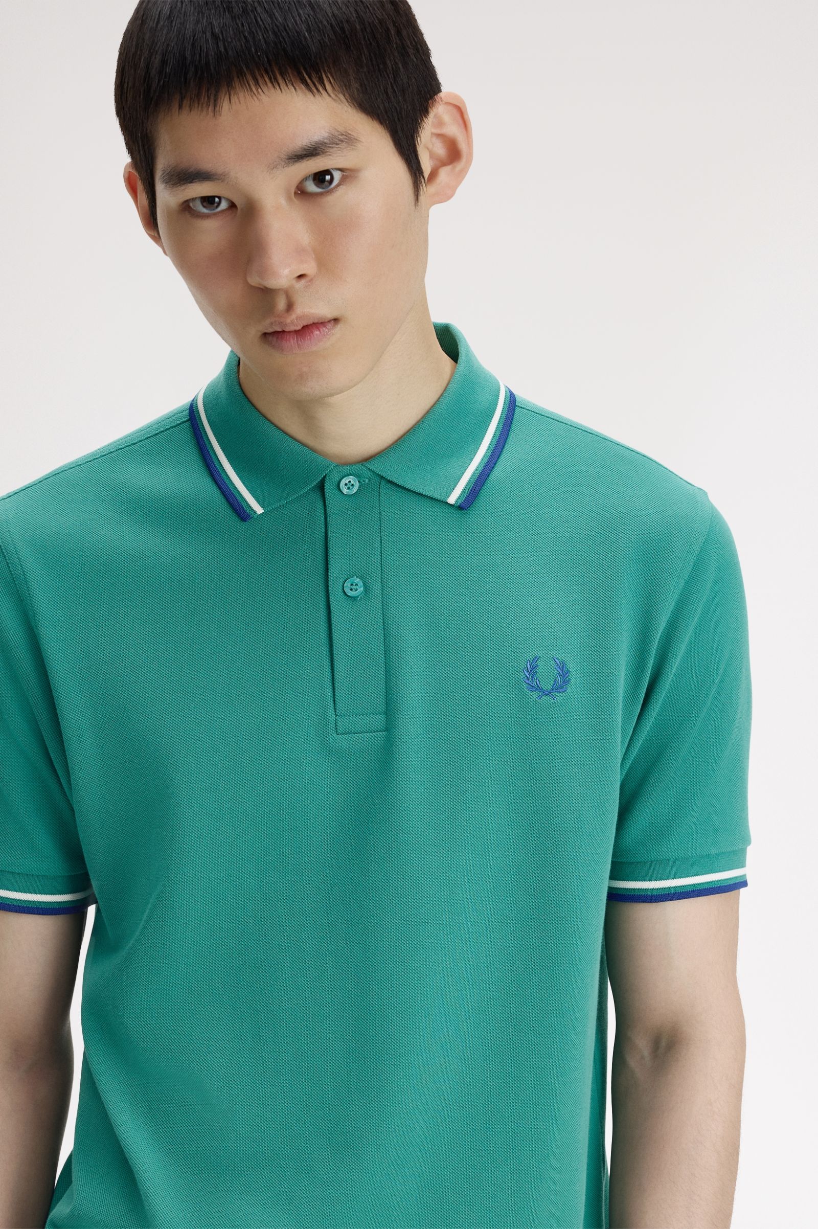 Polo FRED PERRY M3600 Verde Menta Intenso / Blanco Nieve / Eclipse Soho
