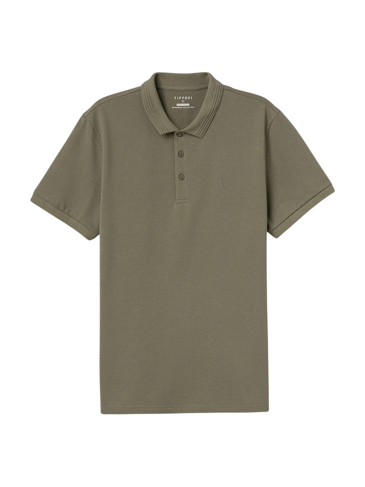 Polo con cuello solapa con efecto rayas en relieve y manga corta. Cierre frontal con botones. Bajo con aberturas laterales. Detalle estampado en relieve.