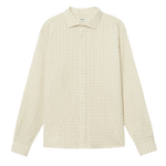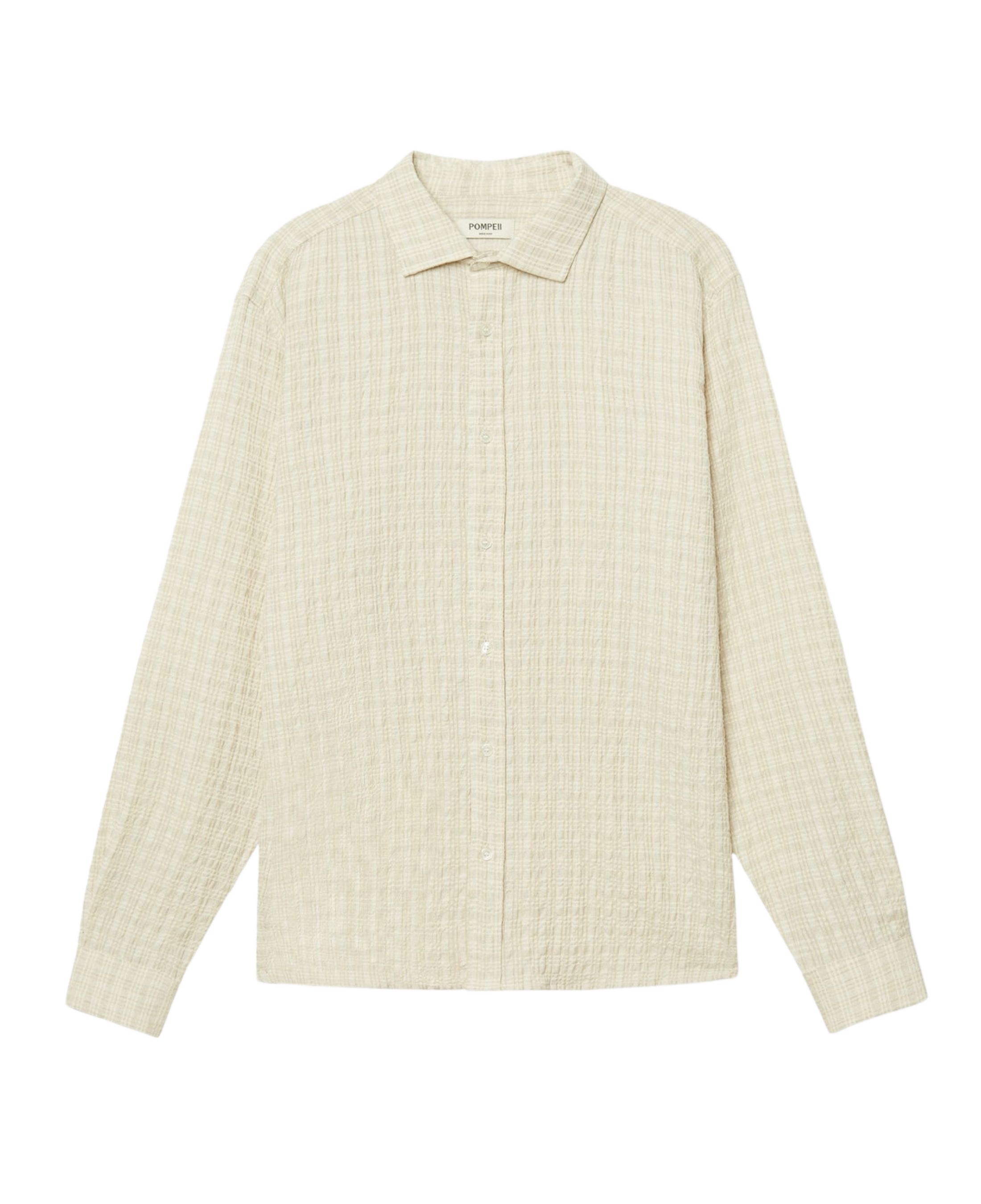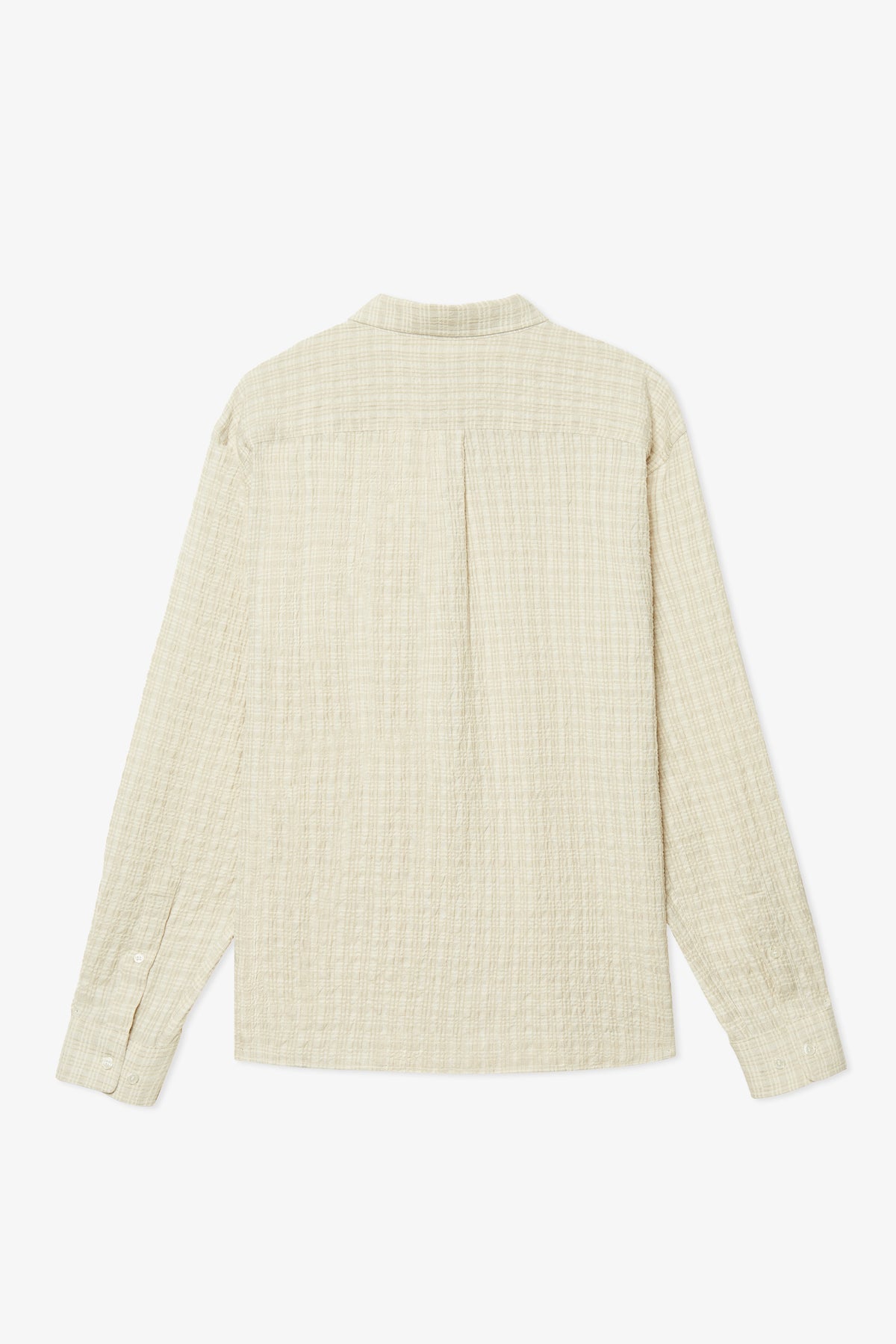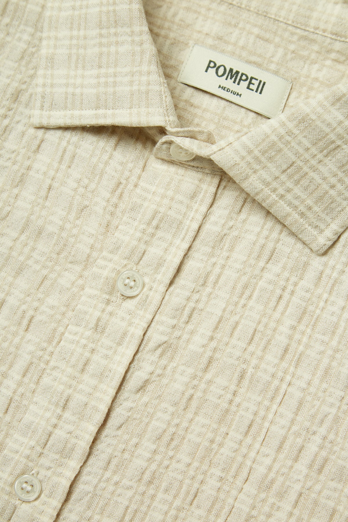 Camisa seersucker de algodón/lino de cuadros con corte relajado.