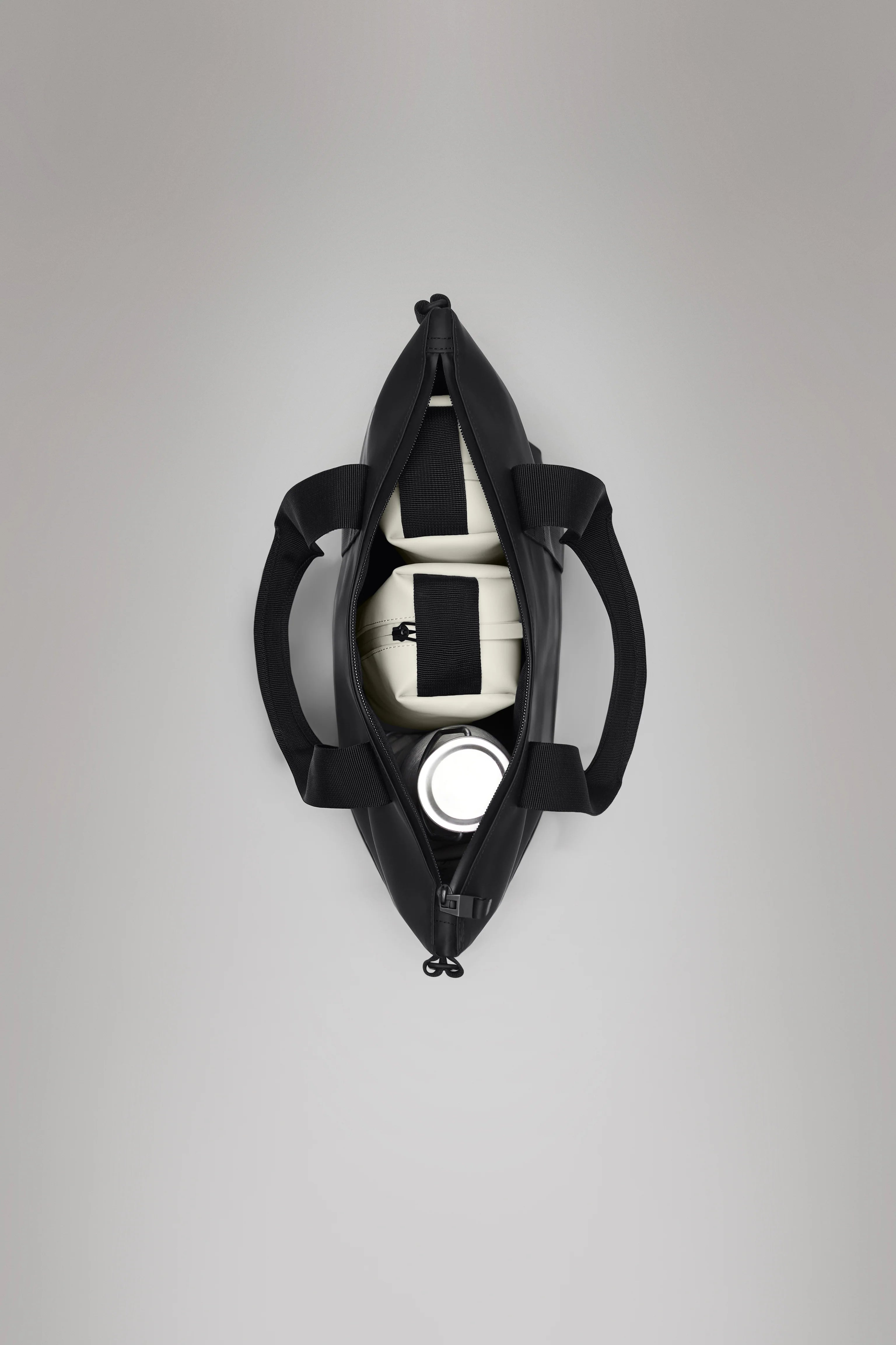 Tote Bag Micro es un bolso tote impermeable perfecto para ir a comprar, desplazarse por la ciudad o ir a la oficina. Se caracteriza por su marcado look funcional y sus prácticos detalles. Presenta una cremallera integral revestida y un compartimento principal para los artículos básicos de uso diario.