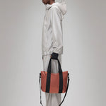 Tote Bag ofrece varias opciones de transporte gracias a su correa desmontable para el hombro y sus asas largas para la mano o el hombro. Diseñado para llevar contigo objetos esenciales, puedes llevarlo colgado del hombro gracias a su correa desmontable o utilizar sus asas tipo cincha. Las asas de transporte presentan anillas de sujeción para objetos pequeños, como llaves.