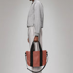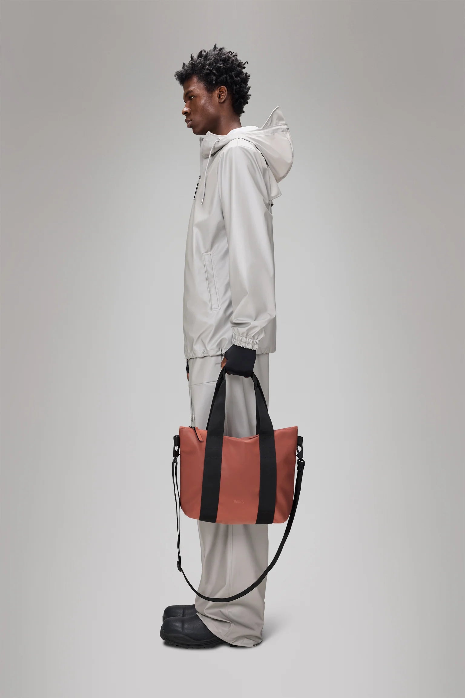 Tote Bag Micro, confeccionado con el tejido de poliuretano (PU) impermeable característico de Rains, ofrece durabilidad, resistencia al transporte y un suave acabado; está diseñado para ofrecer robustez en el transporte, durabilidad y un suave acabado.