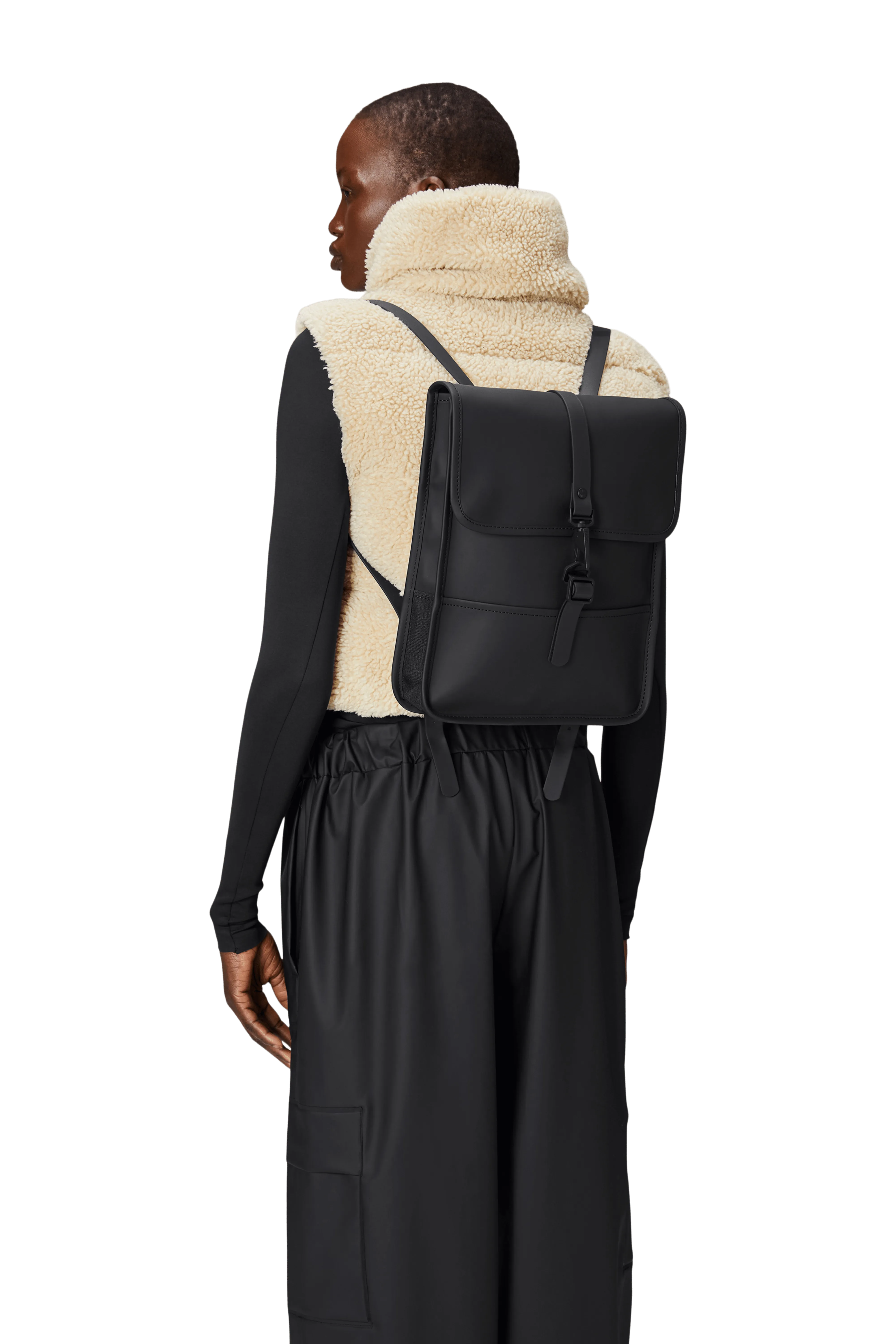 Backpack Micro está confeccionada en el característico tejido impermeable PU de Rains, diseñado para ofrecer resistencia, durabilidad y un tacto suave.