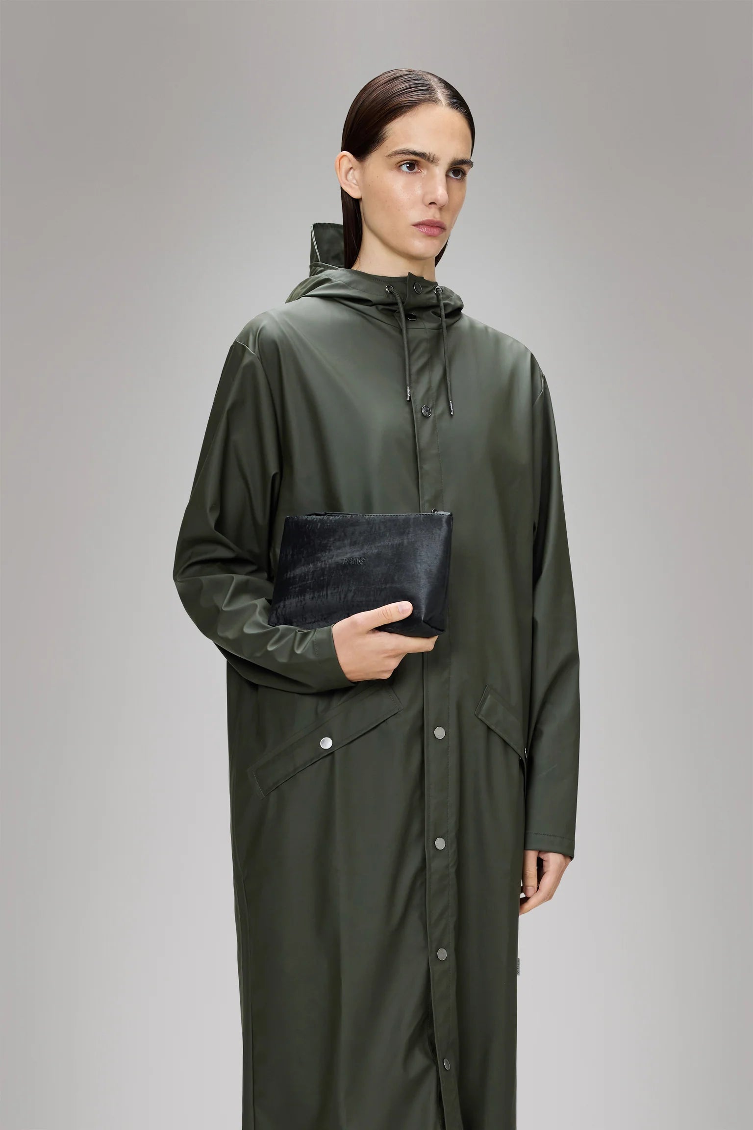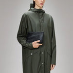 Cosmetic Bag está confeccionado en el tejido de PU impermeable característico de Rains, diseñado para ofrecer robustez en el transporte, durabilidad y un suave acabado.