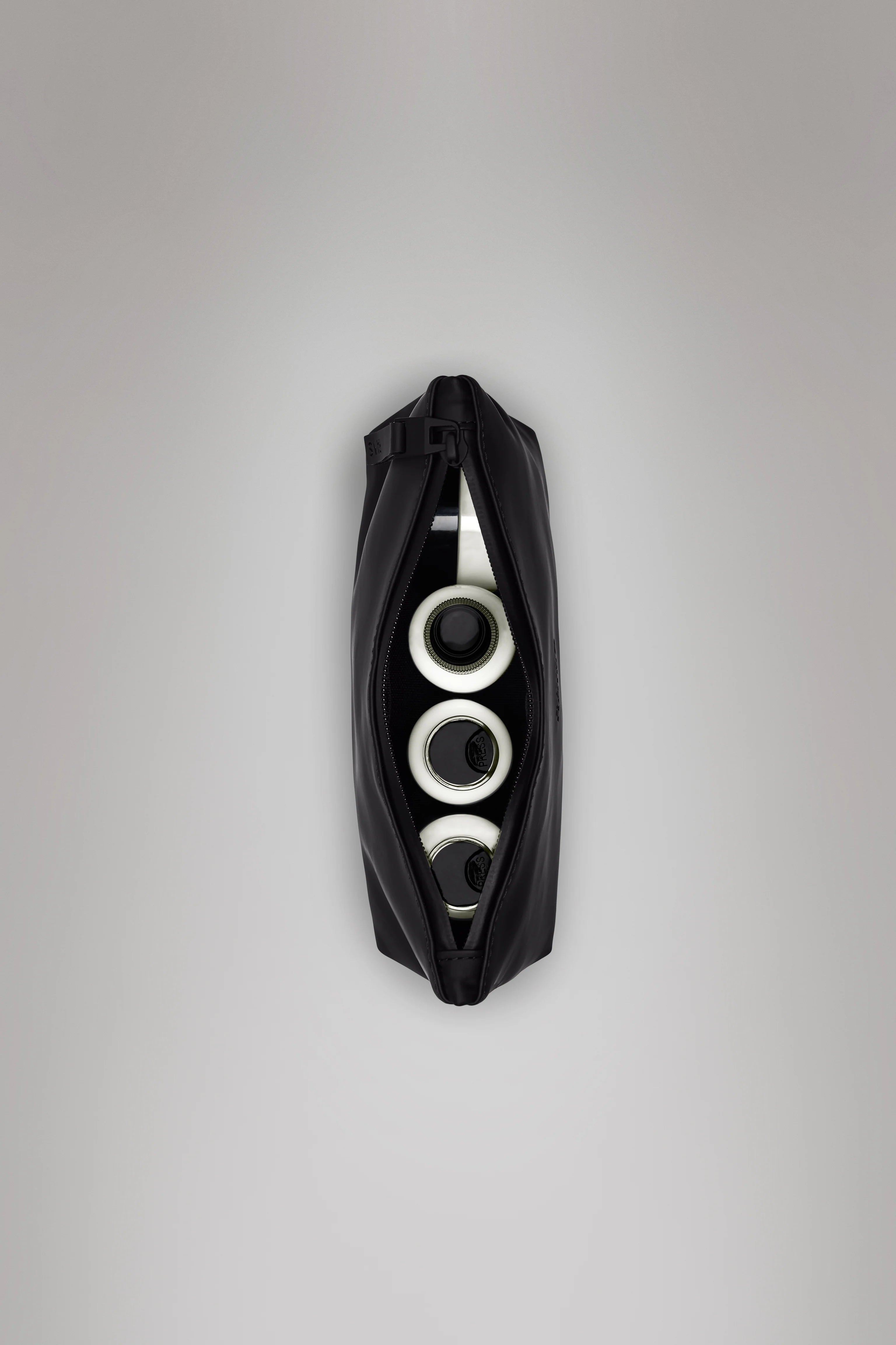 Su diseño se caracteriza por una silueta minimalista, suaves curvas en la base y un limpio diseño pespunteado en la abertura. El neceser se completa con un tirador de cremallera de TPU de tacto suave.