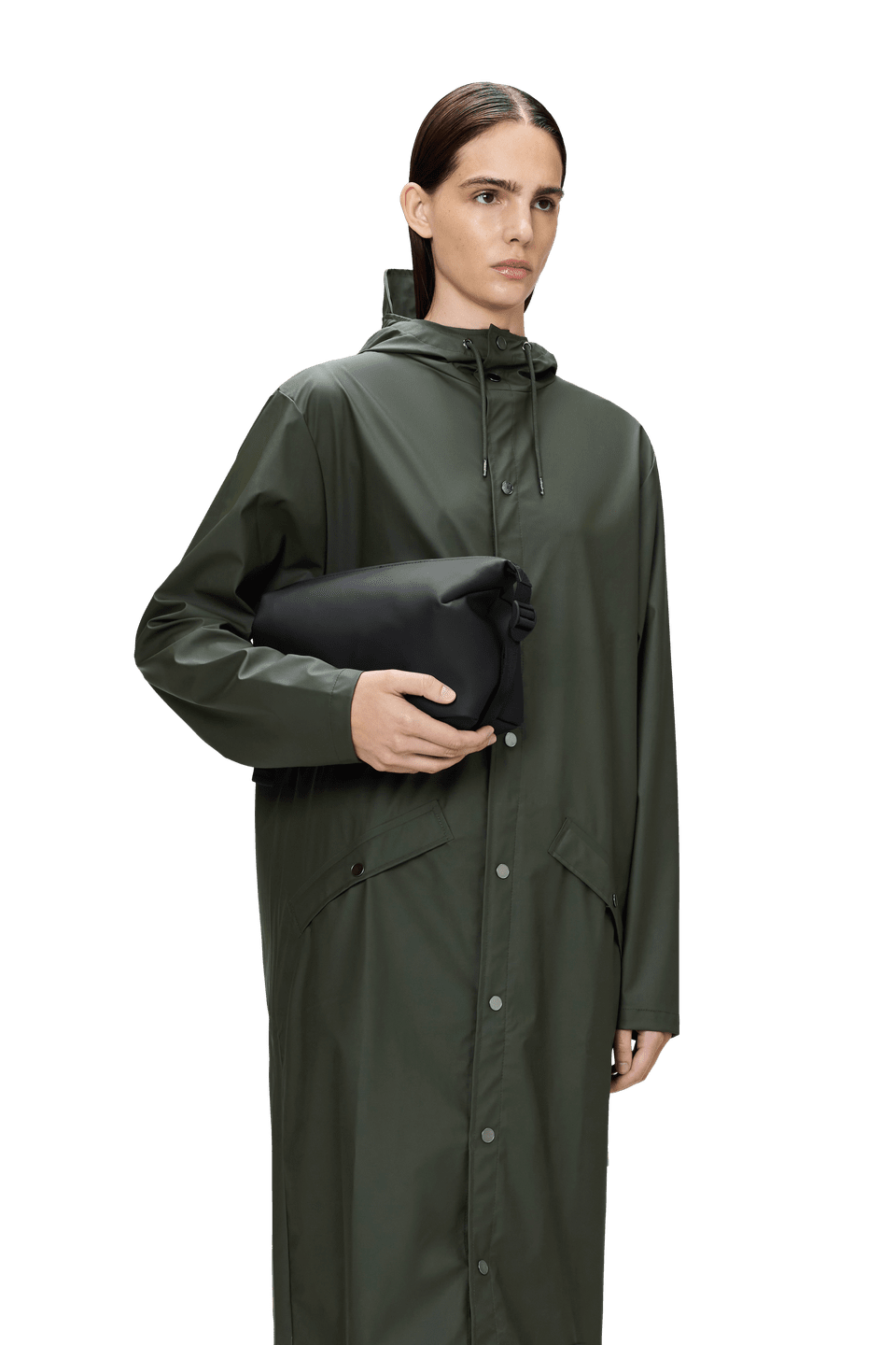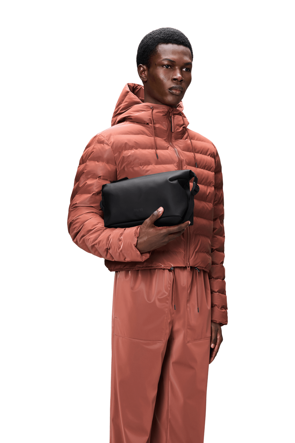 Cosmetic Bag está confeccionado en el tejido de PU impermeable característico de Rains, diseñado para ofrecer robustez en el transporte, durabilidad y un suave acabado.