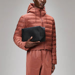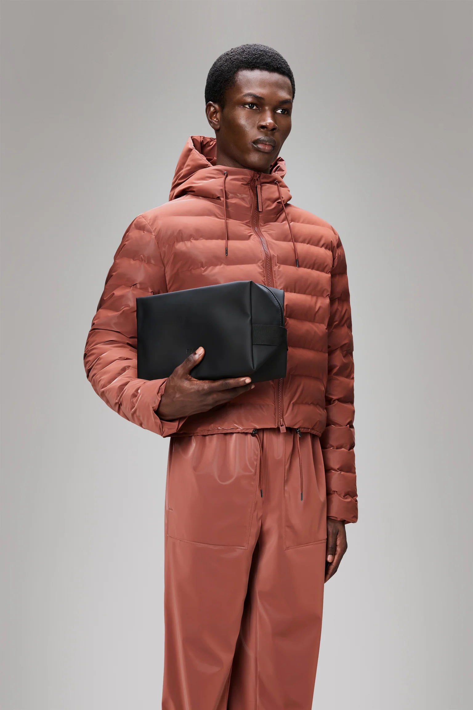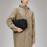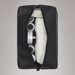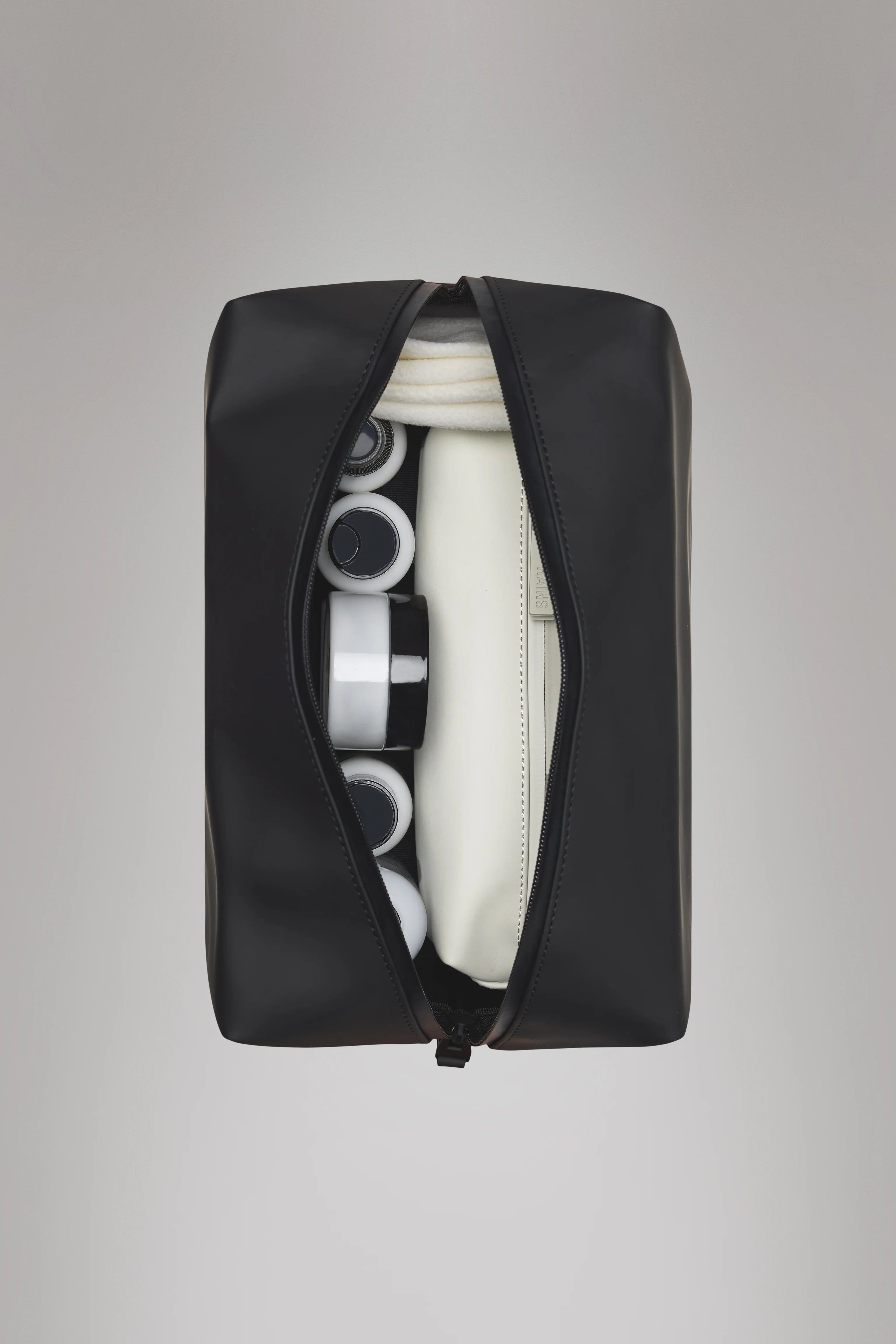 Wash Bag Small está confeccionado con el exclusivo tejido de PU impermeable de Rains, diseñado para brindar resistencia, durabilidad y una sensación de suavidad.