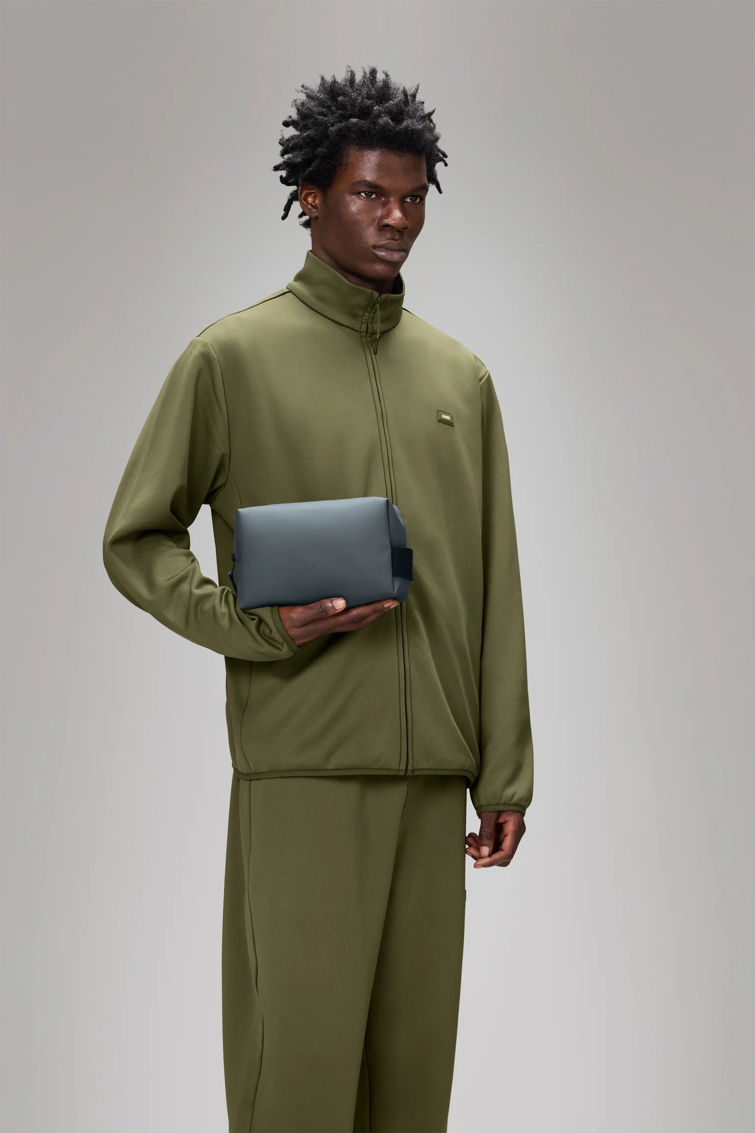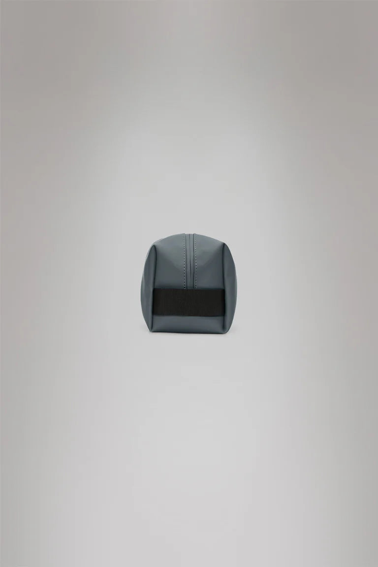 Wash Bag Small está confeccionado en el tejido de PU impermeable característico de Rains, diseñado para ofrecer robustez en el transporte, durabilidad y un suave acabado.