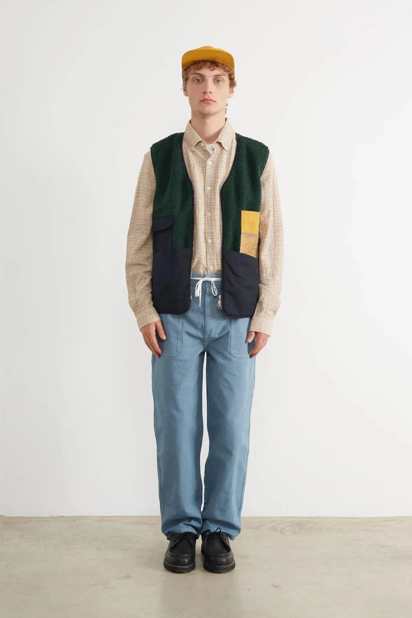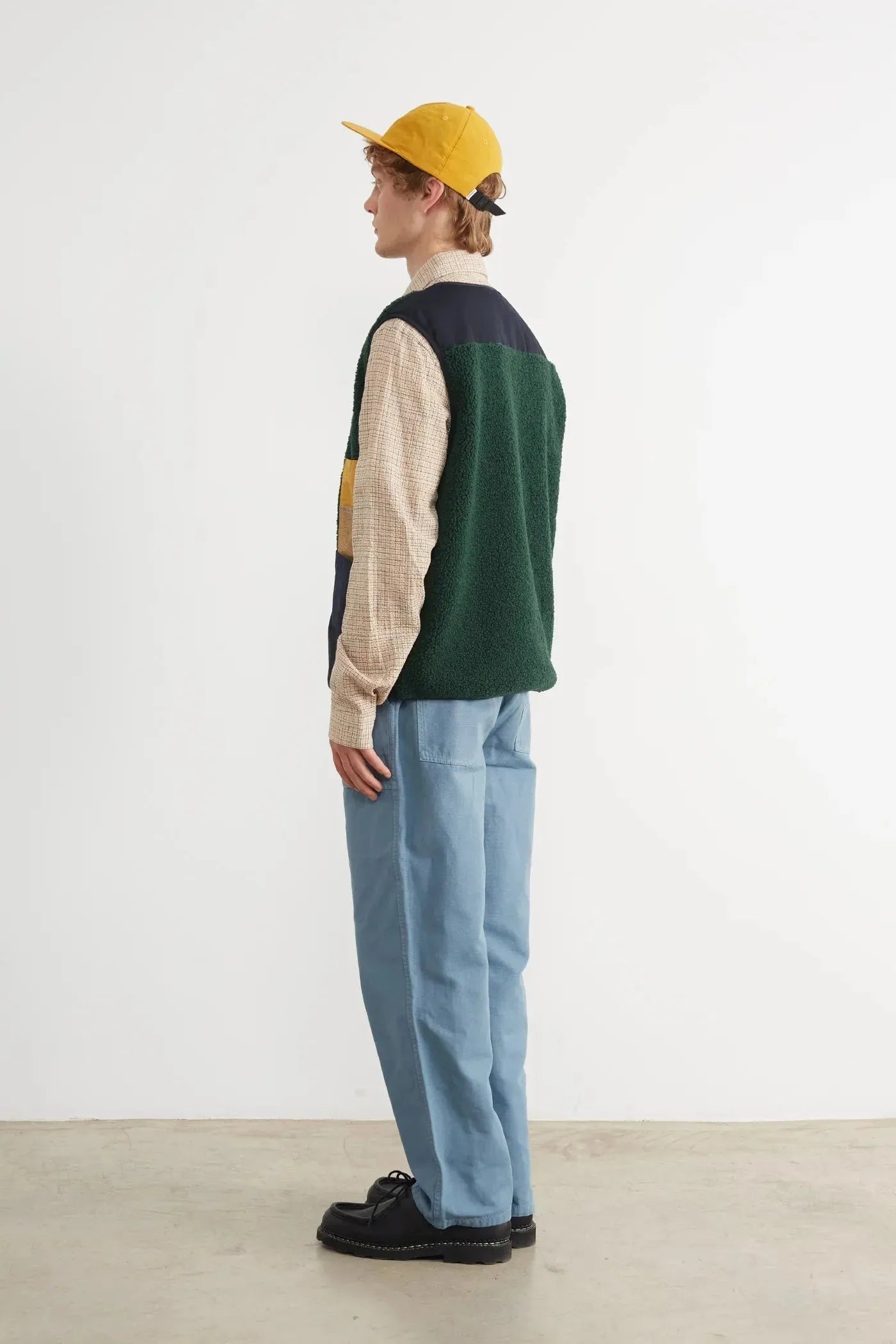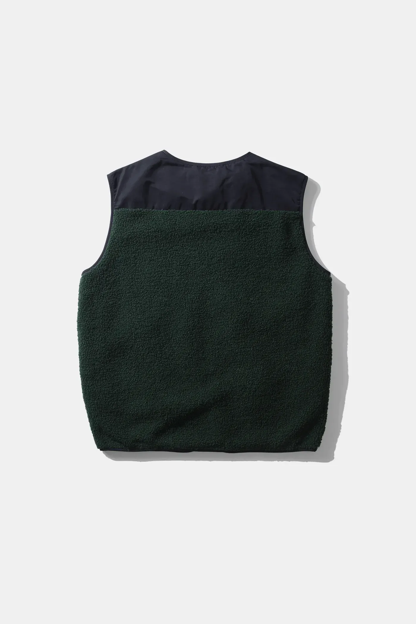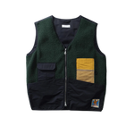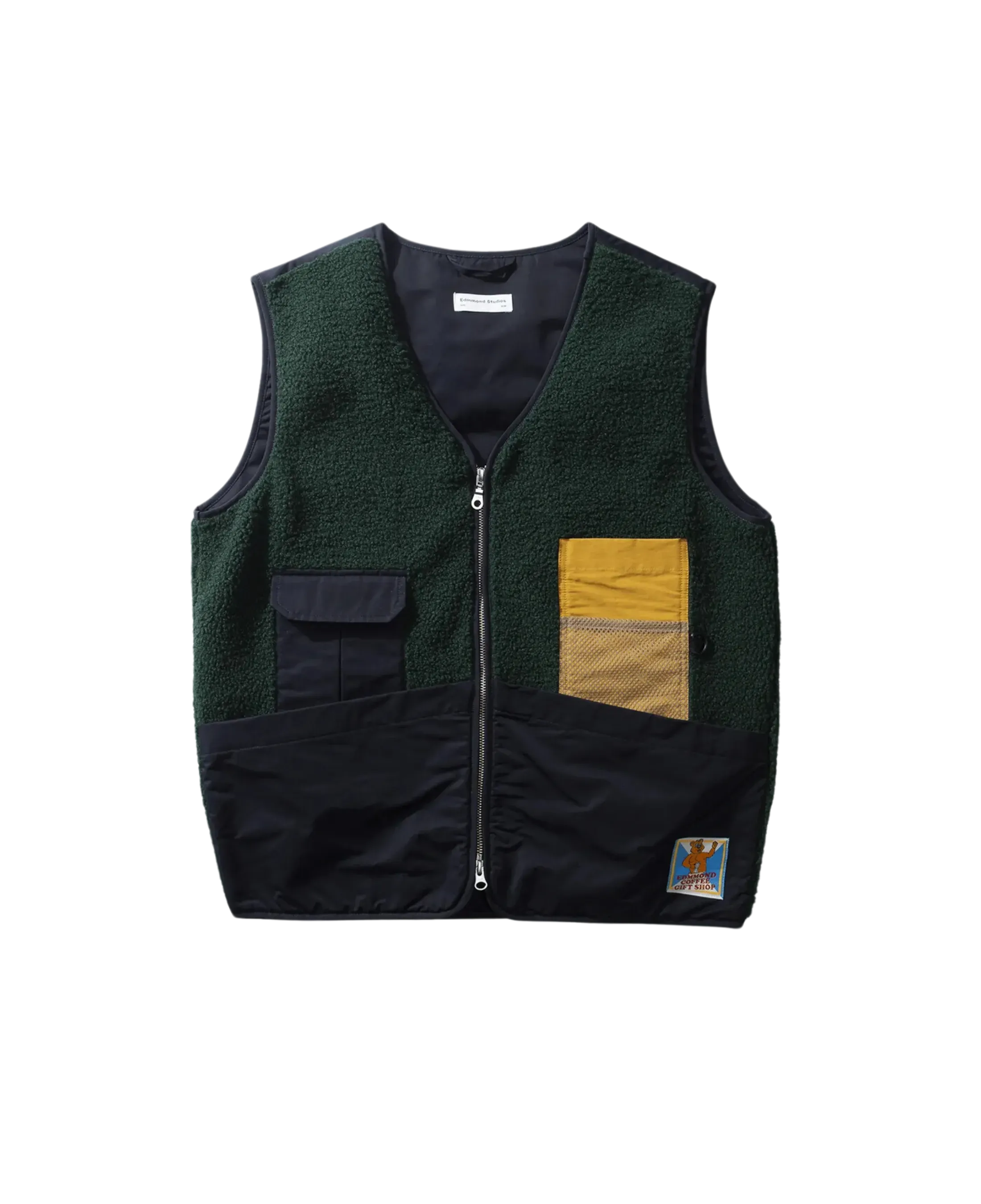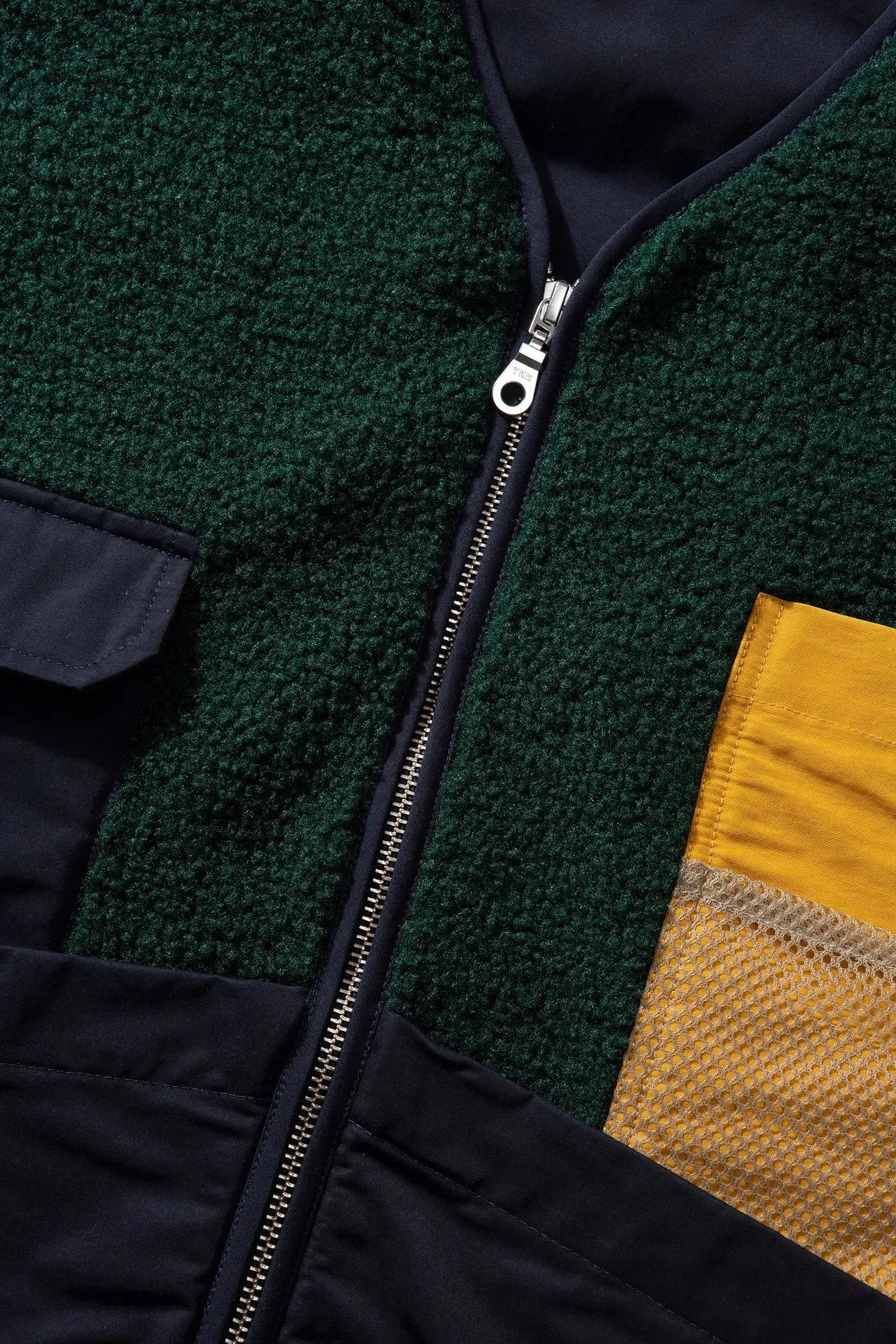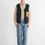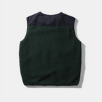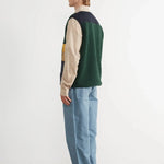 Chaleco verde oscuro que combina diferentes texturas. Con cremallera metálica frontal y dos bolsillos para dar ese toque de color que buscas durante esta temporada.