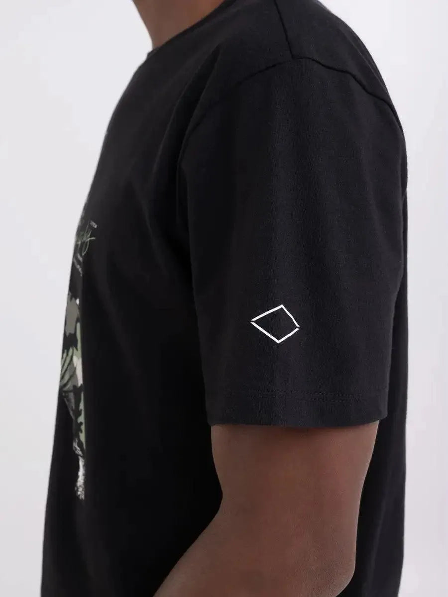 Camiseta con cuello redondo confeccionada en punto de algodón 100 %. El modelo de manga corta y corte regular se completa con el estampado personalizado con temática biker en el pecho y por detrás.