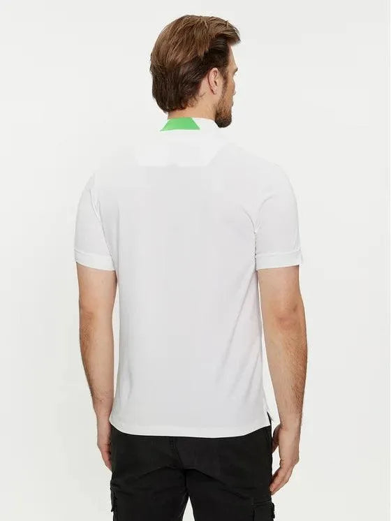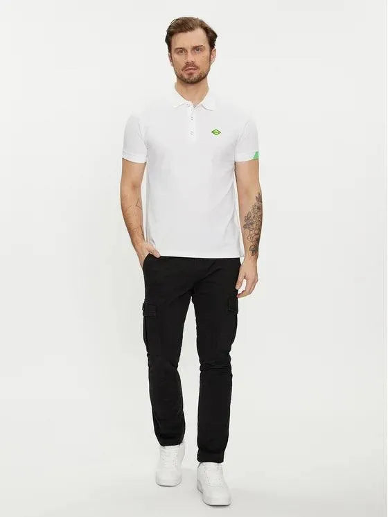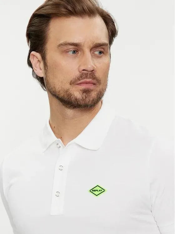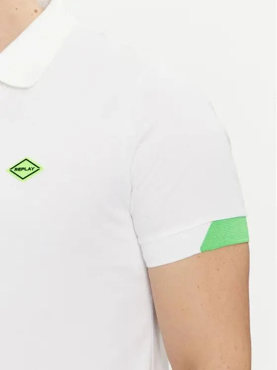 Polo de piqué de algodón teñido en prenda de corte regular. El modelo de manga corta se caracteriza por el contraste por la parte de atrás del cuello. Completan la prenda el parche de rombo con logo el pecho y los botones personalizados.