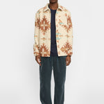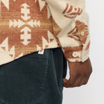 Una sobrecamisa superpesada confeccionada en un tejido mixto de poliéster y lana, con un suave aspecto de lana cepillada. Esta camisa informal está diseñada con un único bolsillo en el pecho de corte afilado y un cierre frontal con botones tonales. La camisa tiene una presilla en el cuello para colgarla fácilmente, puños ajustables para mayor comodidad y es perfecta para tu look diario en climas fríos. Para mayor resistencia y movilidad, la camisa está confeccionada con un canesú de doble capa y un pliegue central en la espalda. El característico estampado geométrico está inspirado en las antiguas tradiciones aztecas. Los diseños simbólicos de los aztecas solían ser formas geométricas rectangulares y circulares, que se repetían en líneas largas y simétricas, y se realizaban con el propósito.