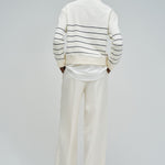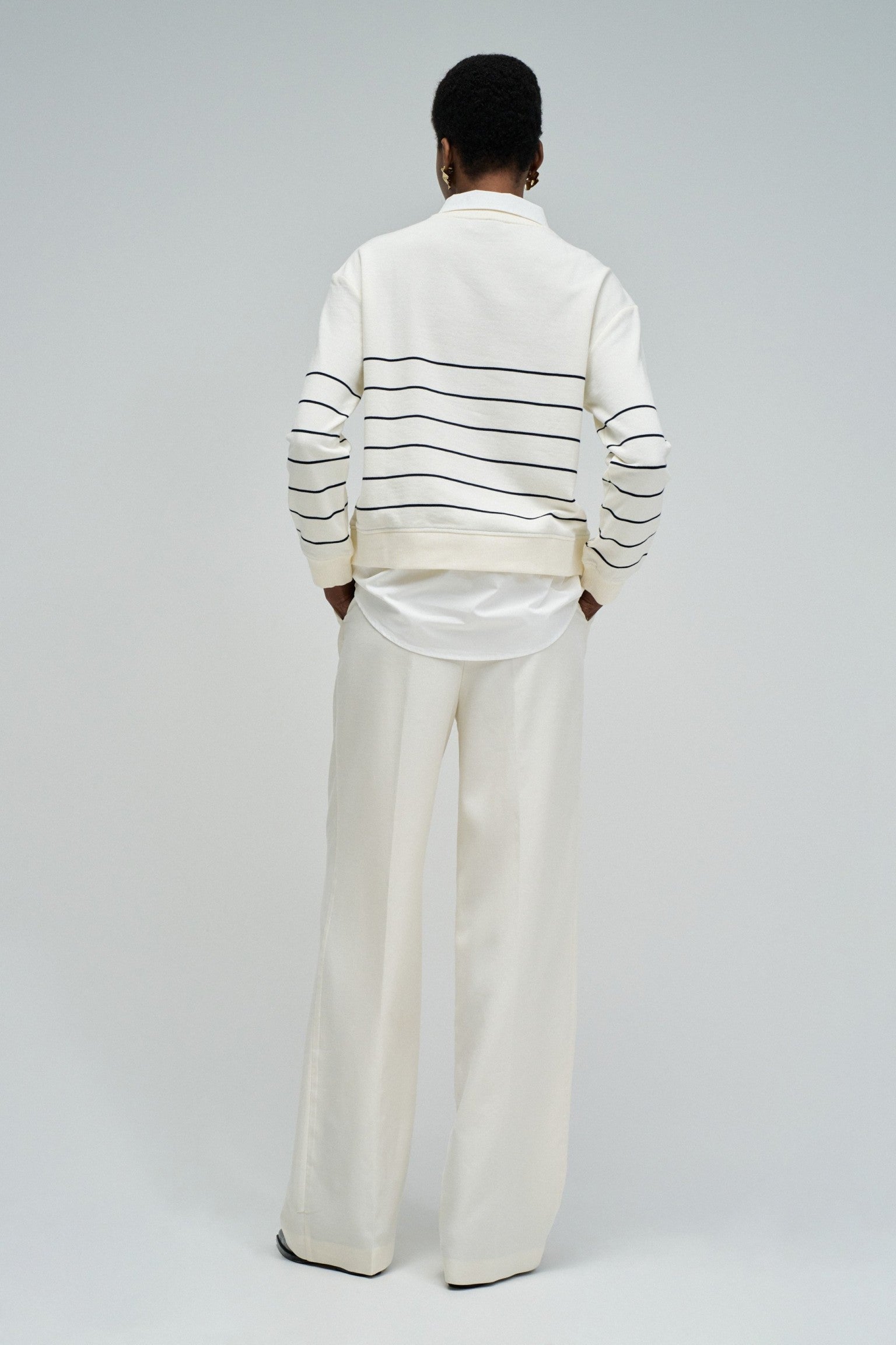 Presenta un fit regular que favorece la silueta sin ajustarse en exceso, junto con un cuello redondo clásico que aporta un acabado limpio y confortable. El detalle de la camisa incorporada en la parte inferior crea un efecto de capas que realza el estilismo sin necesidad de superponer prendas adicionales.