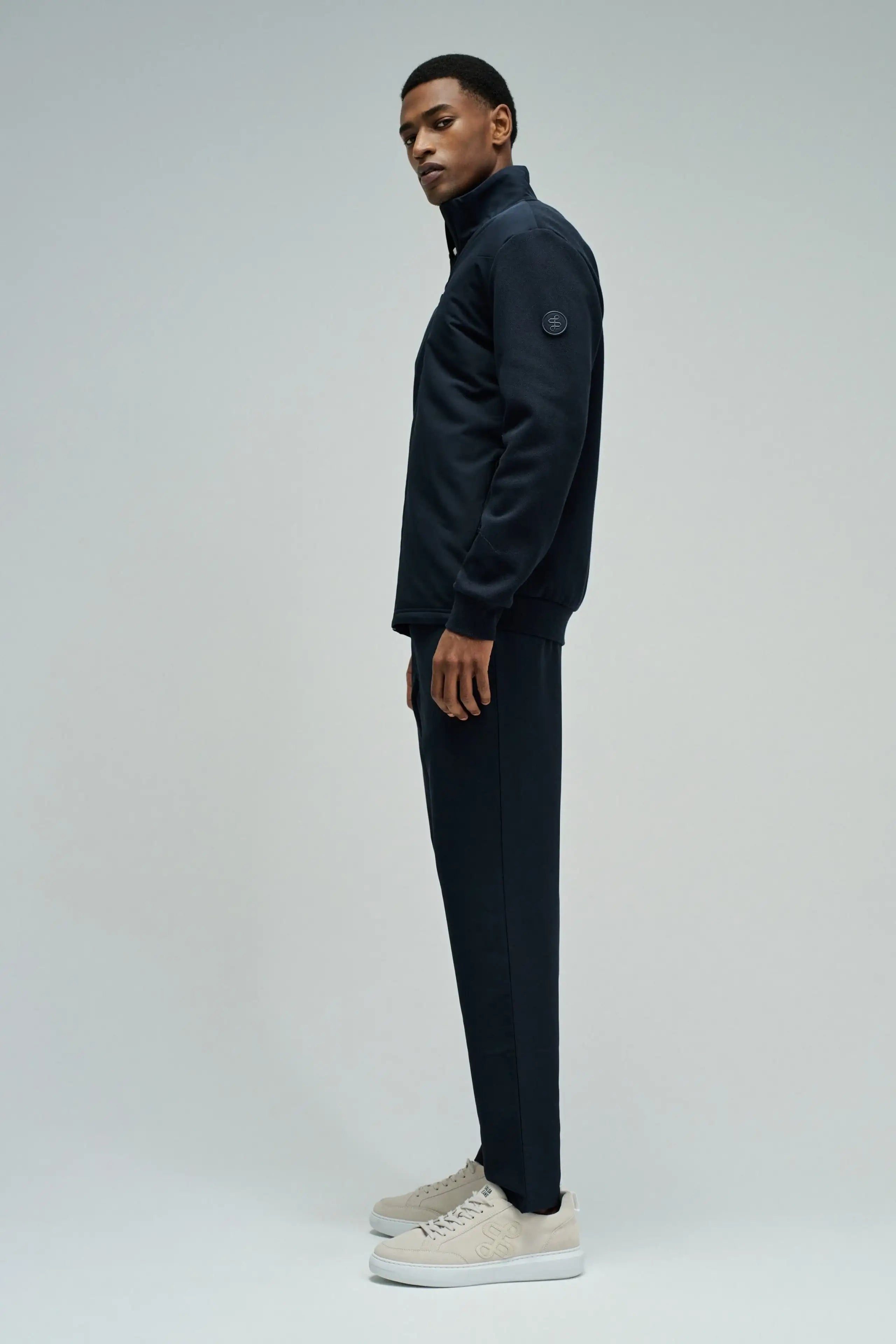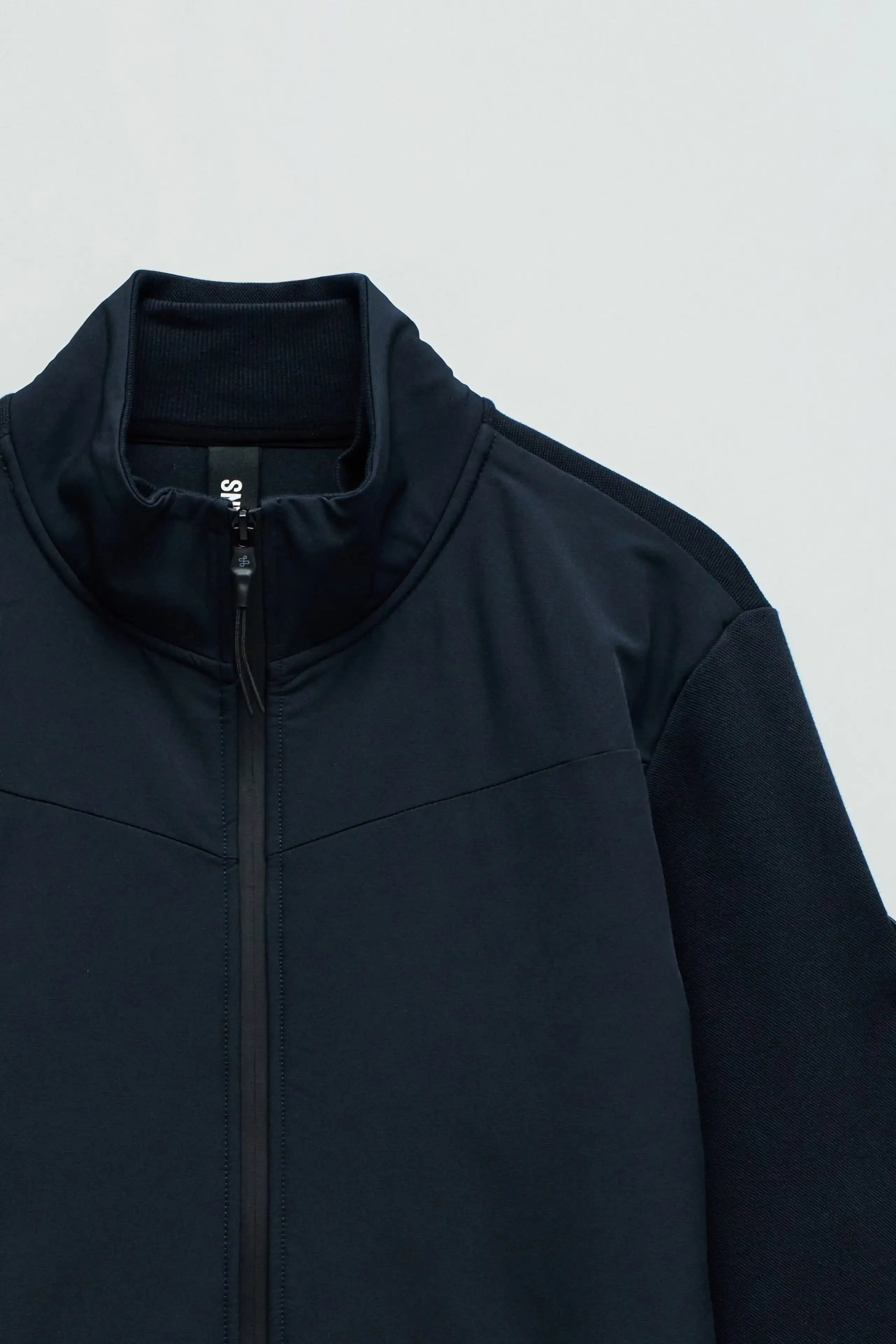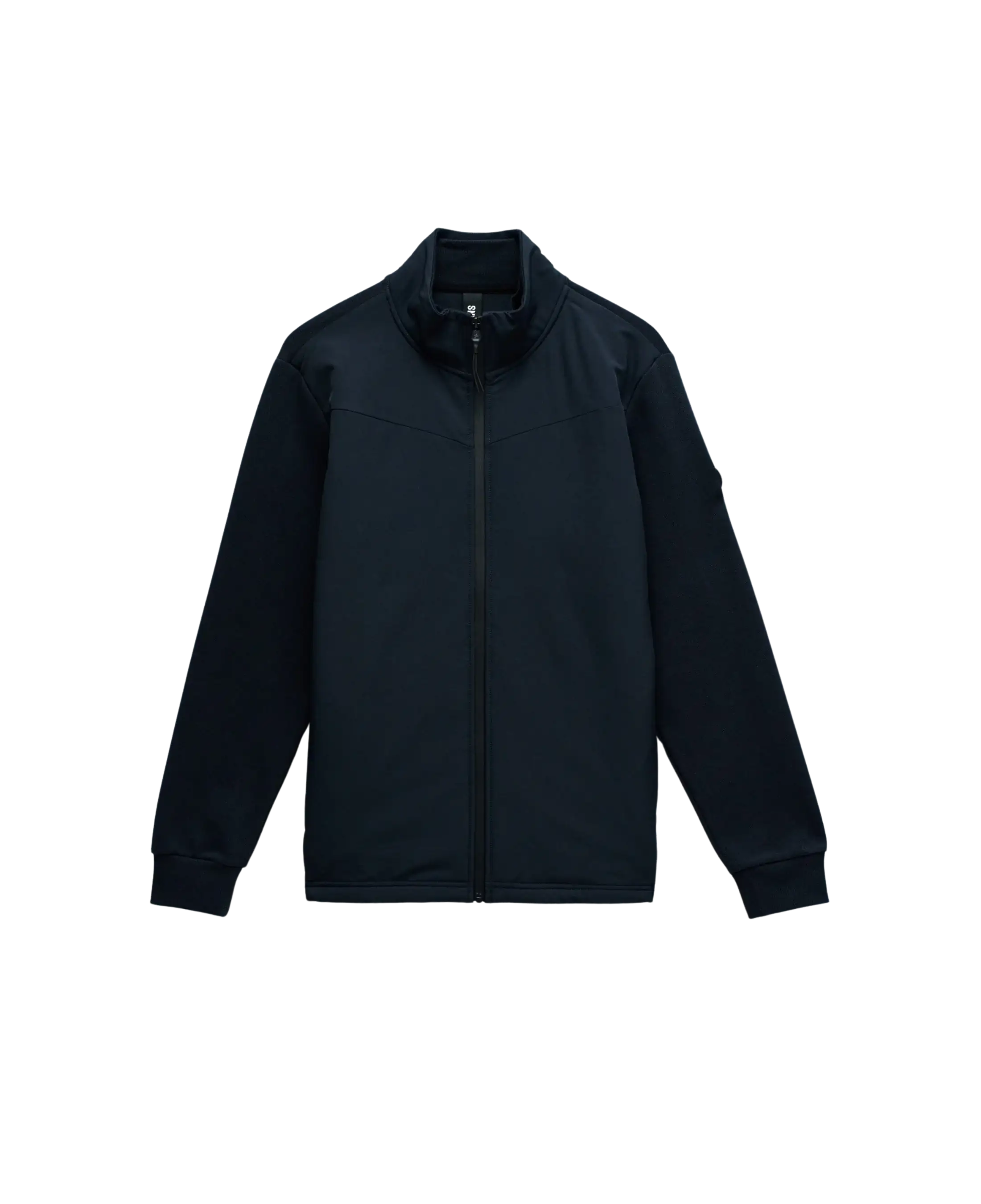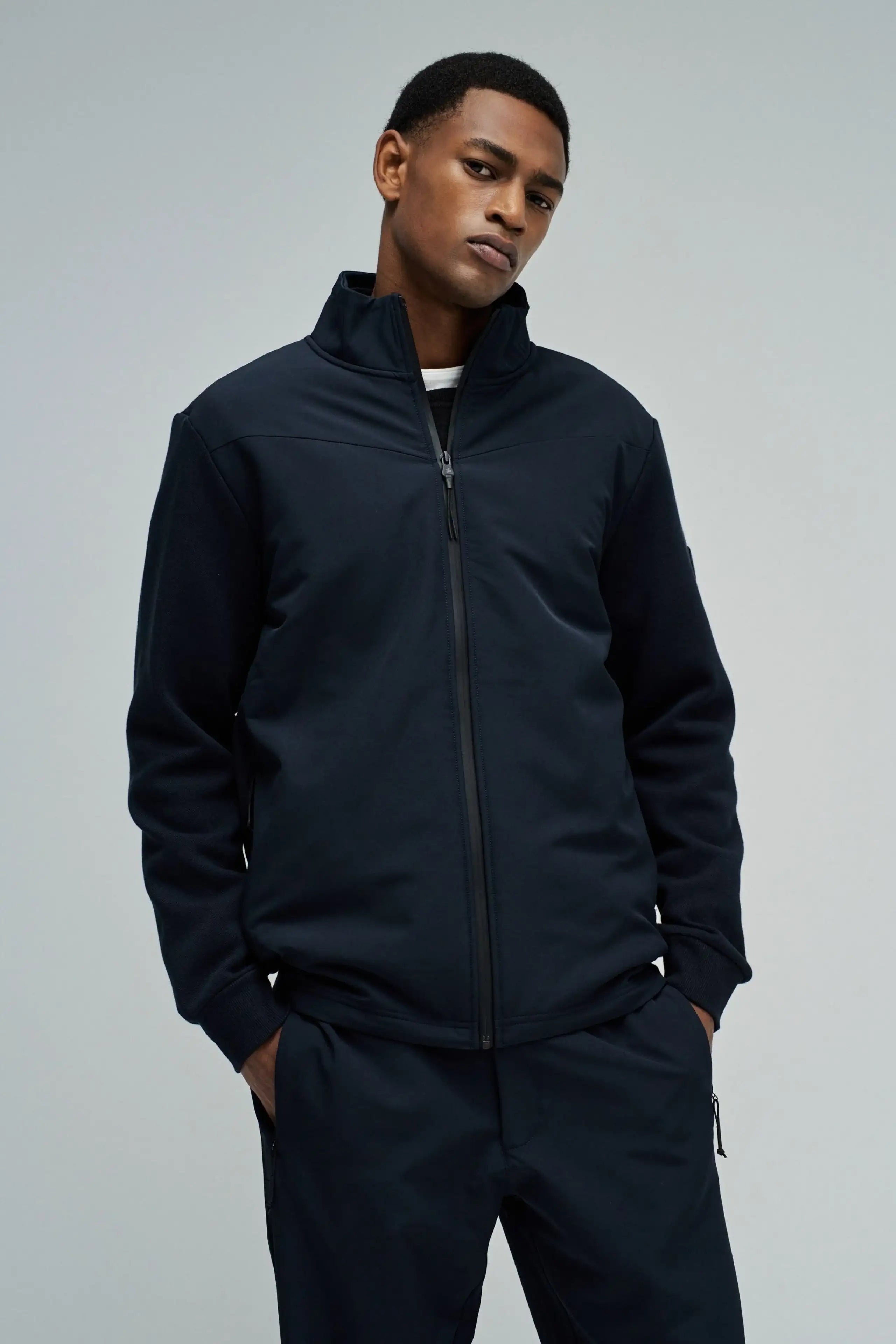 El diseño incorpora mangas largas con puños acanalados, cuello alto y apertura frontal con cremallera, aportando protección y practicidad. Los dos bolsillos laterales con cremallera refuerzan su carácter funcional, mientras que el acabado liso mantiene una estética limpia y versátil, fácil de integrar en distintos estilos.