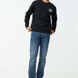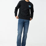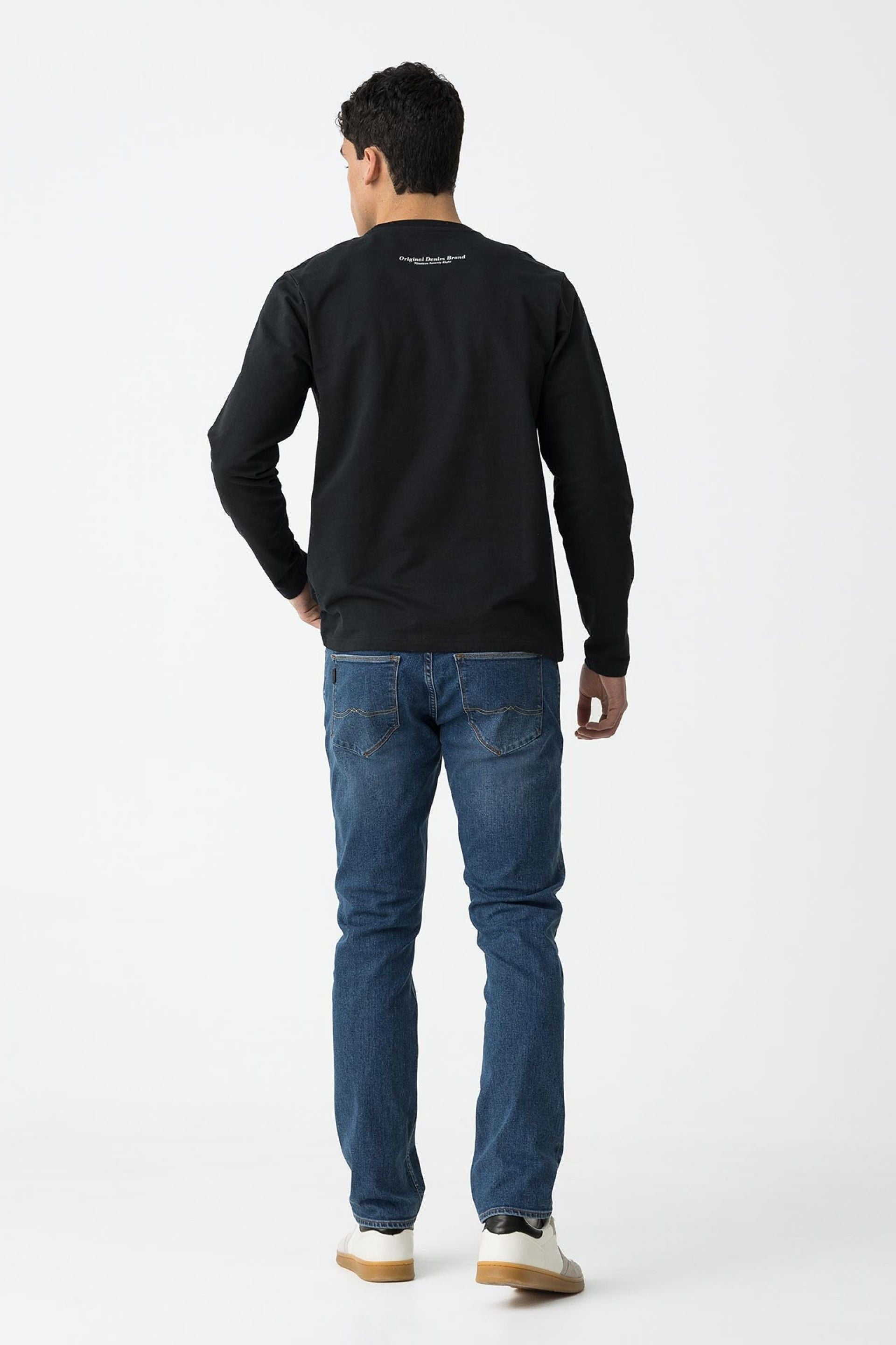Jeans comfort fit con cinco bolsillos. Cierre frontal con cremallera y botón metálico.