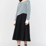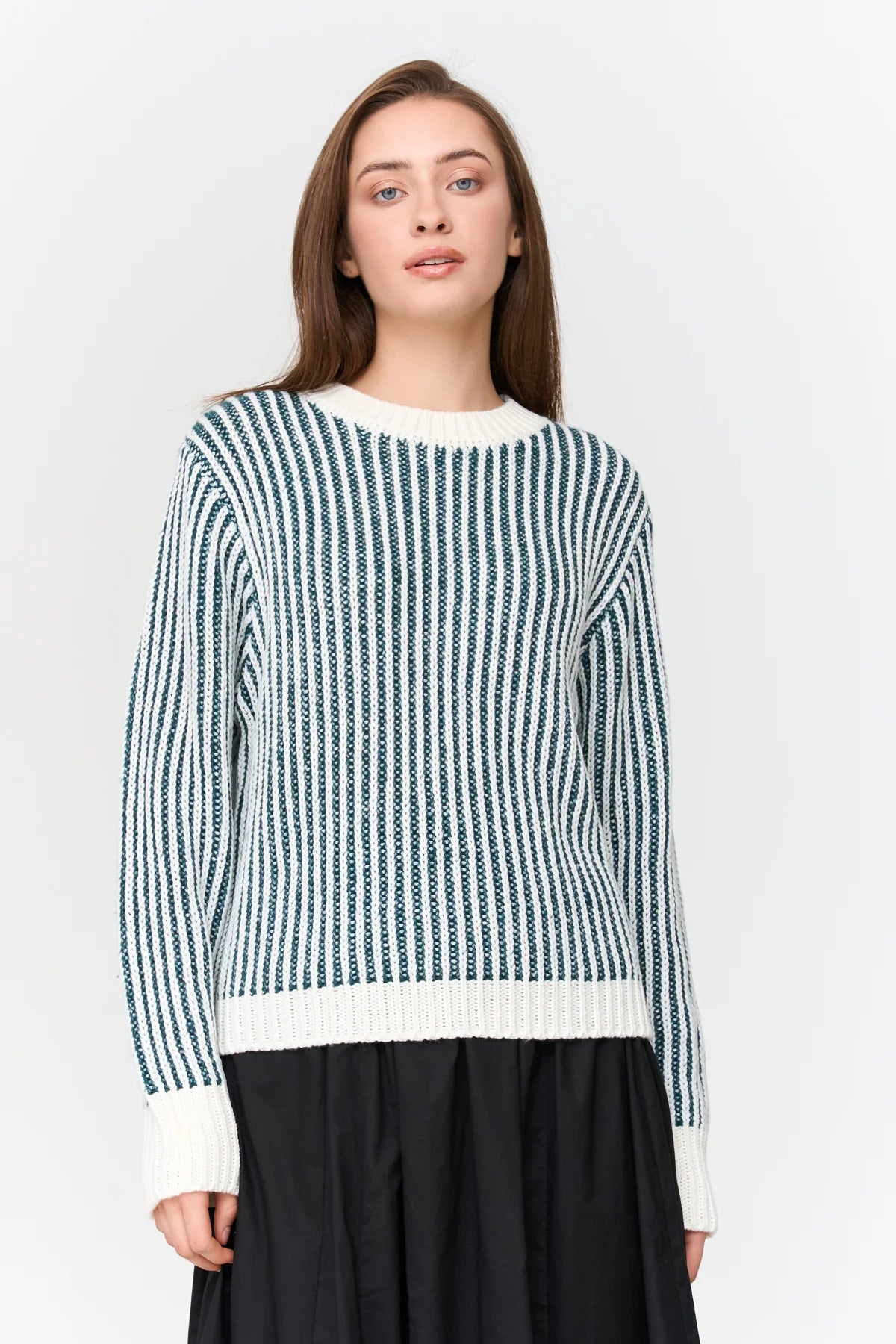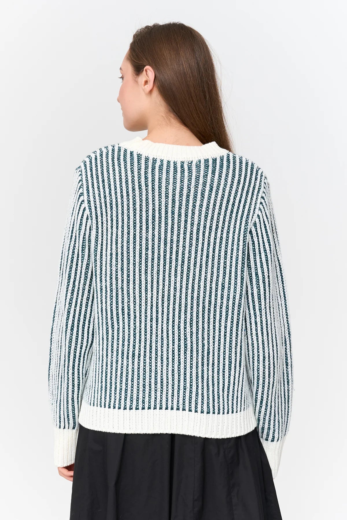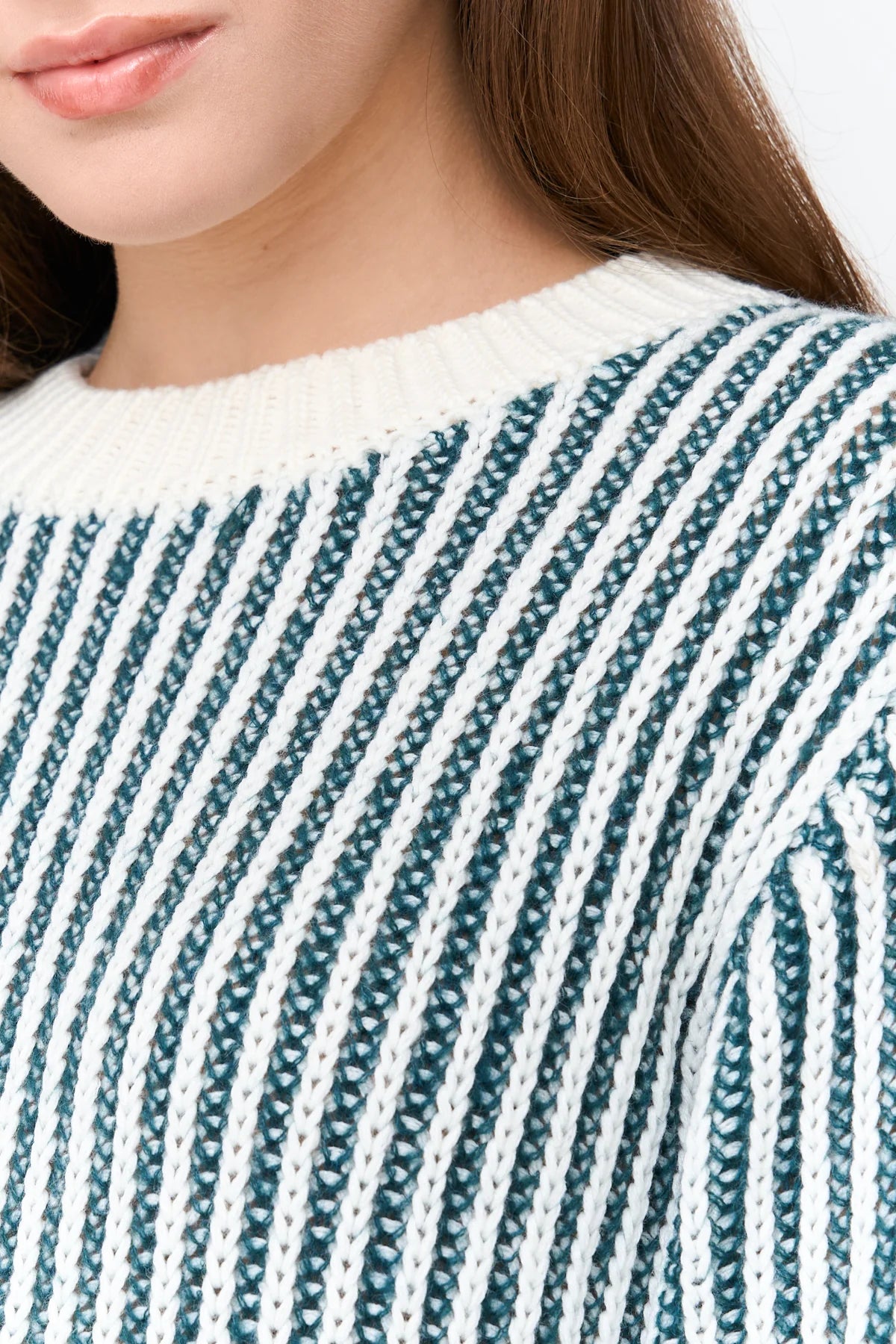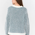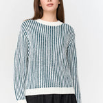El jersey de rayas de 24colours es la prenda perfecta para dar un aire fresco y atemporal a tu armario. Confeccionado en un punto grueso y cálido, combina un diseño bicolor en blanco y verde petróleo con un patrón de rayas verticales que estilizan la figura y aportan un toque moderno.