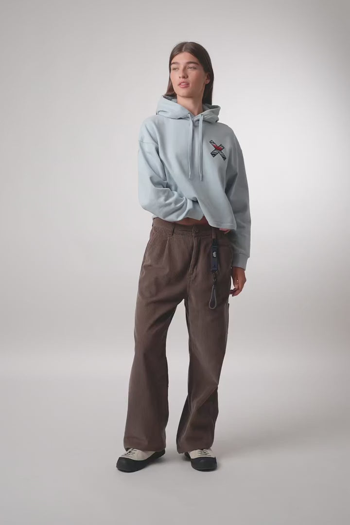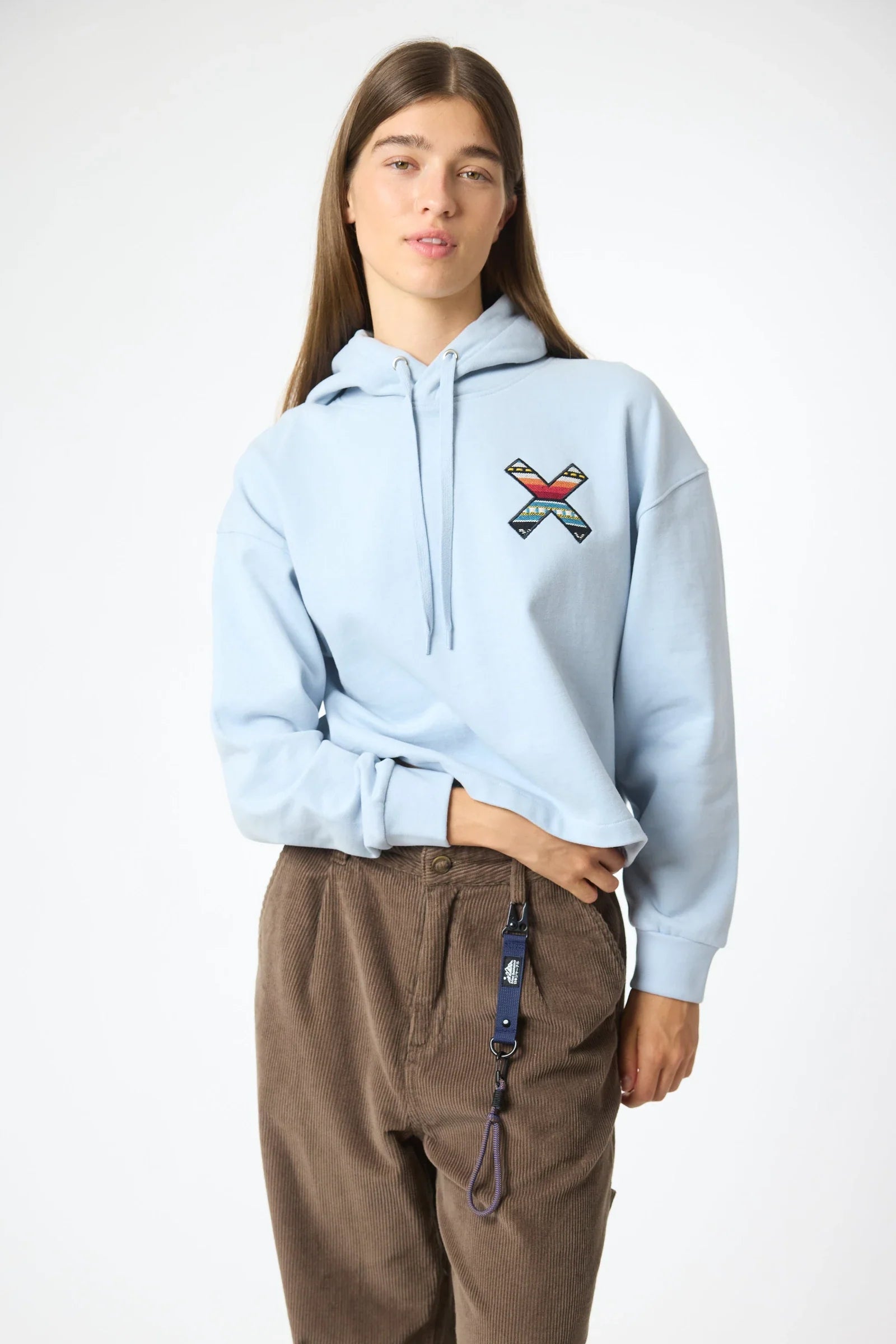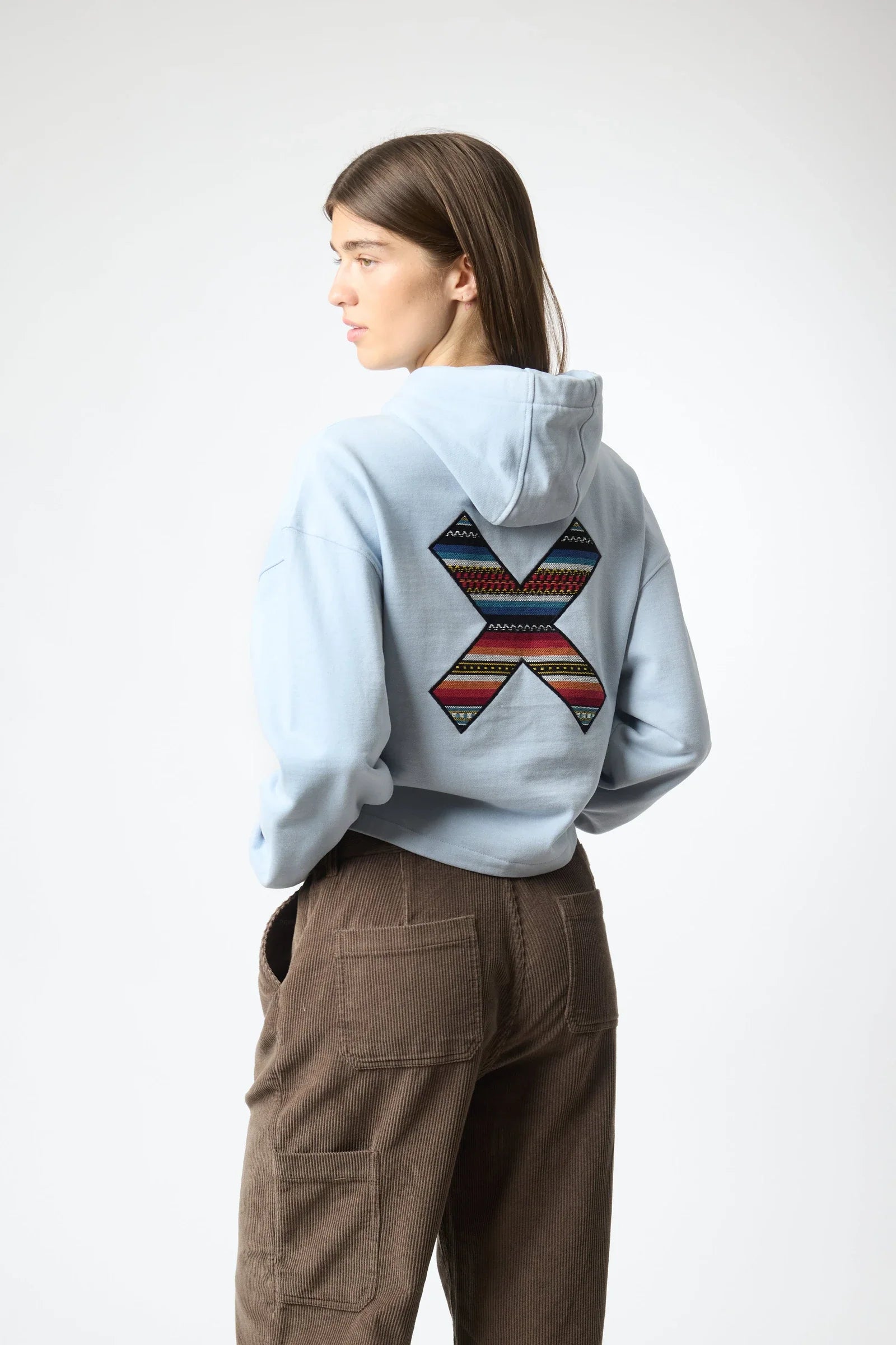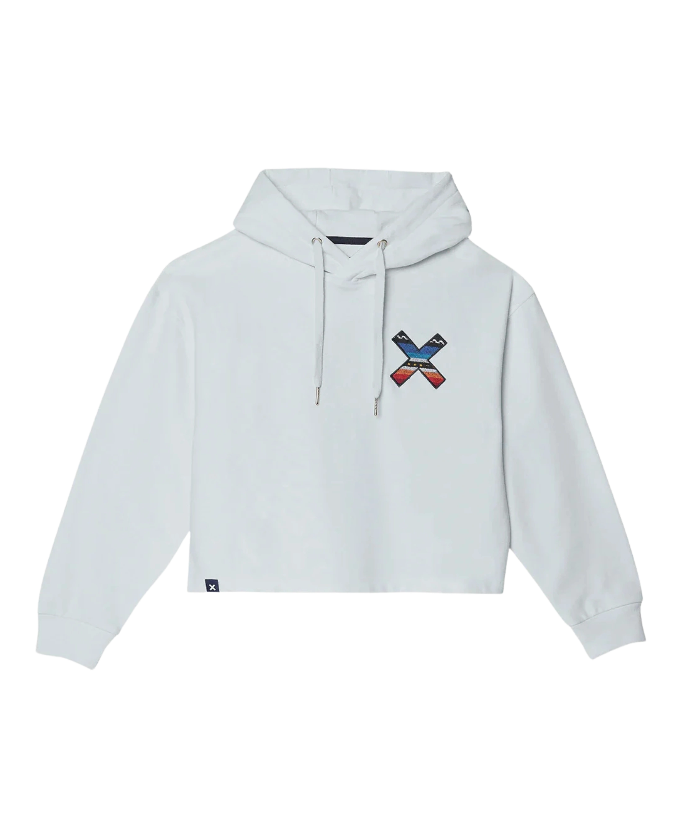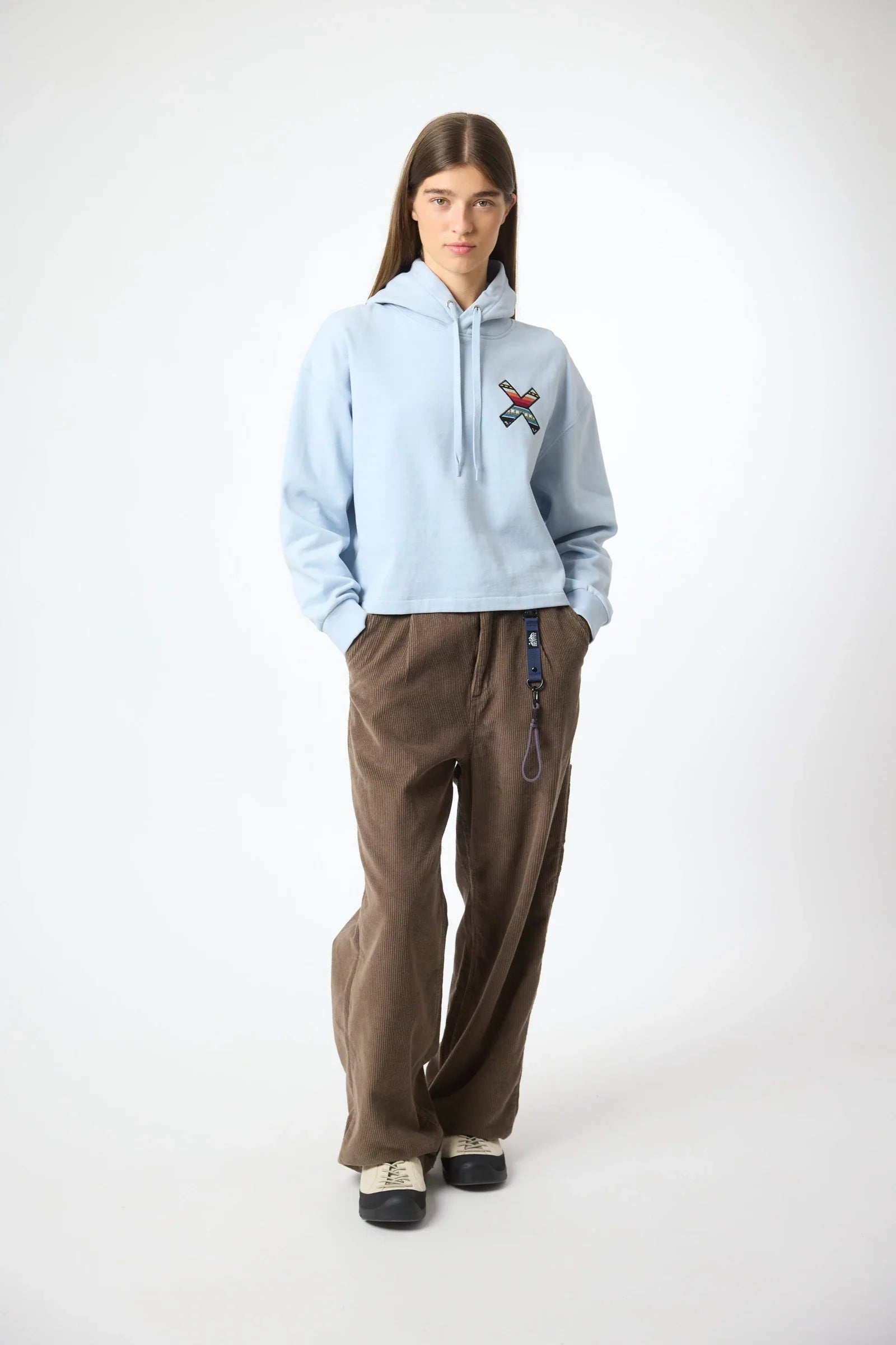 La Ice Blue Classic Woman Hoodie de Blue Banana es una sudadera femenina con capucha confeccionada en 100 % algodón orgánico, que combina estilo urbano y conciencia medioambiental. Su corte crop fit le aporta una silueta moderna, mientras que el bordado “X” característico de la marca en pecho y espalda añade un detalle distintivo. El tono azul hielo (ice blue) aporta frescura y versatilidad, facilitando combinaciones con denim claro, blanco o tonos pastel.