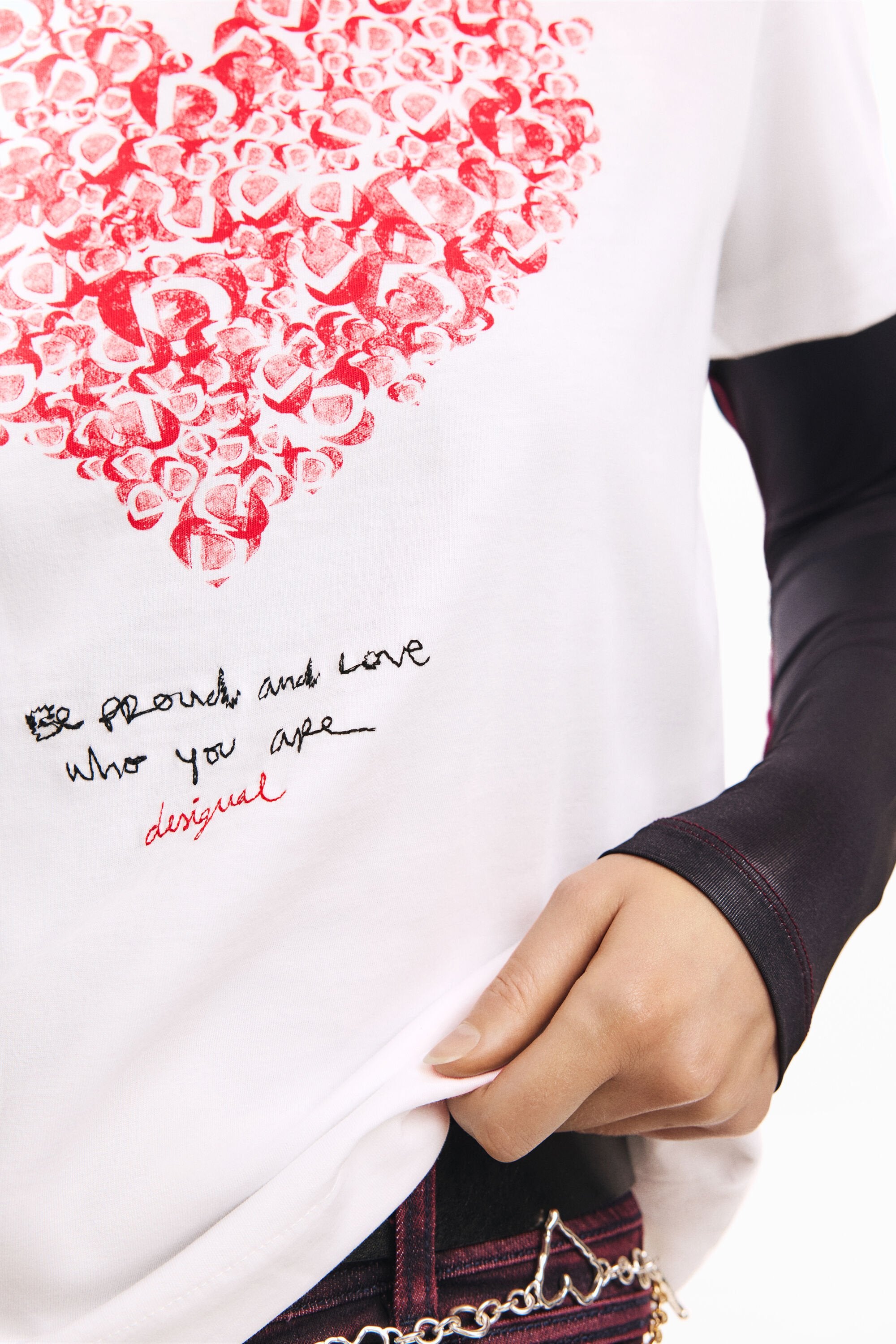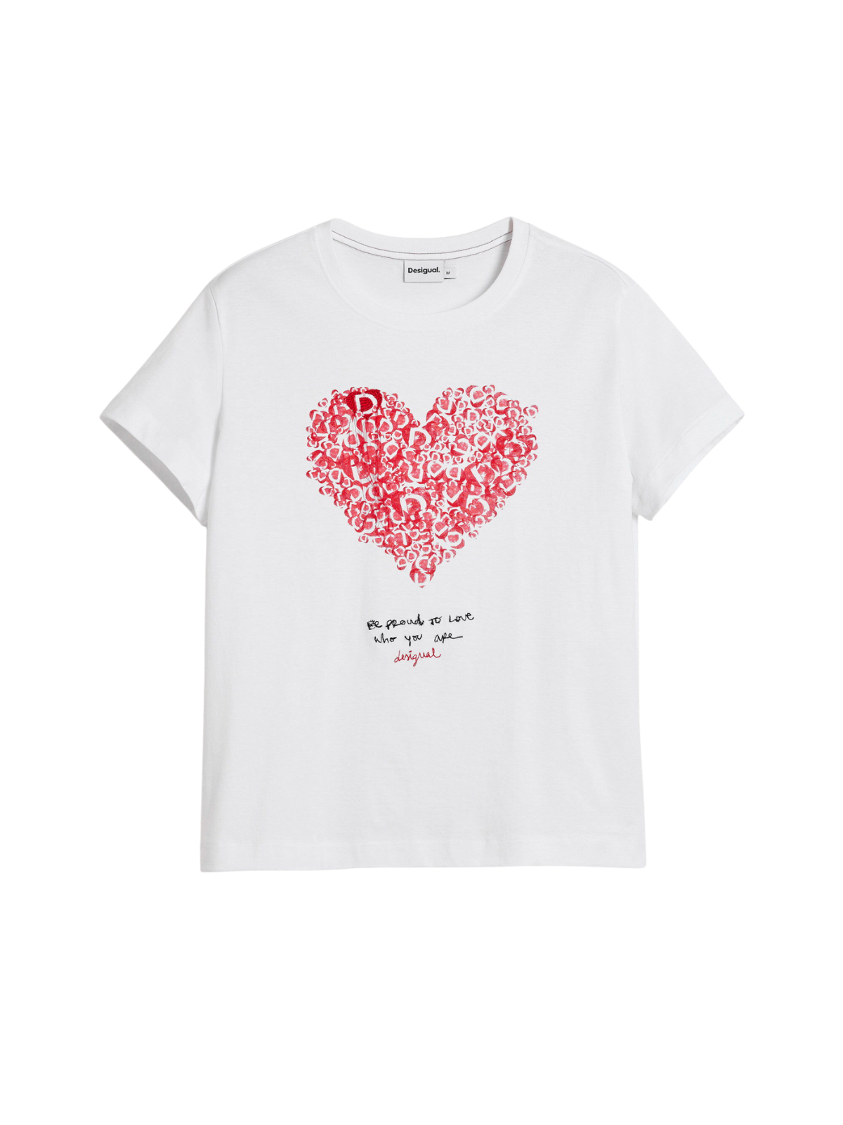 La camiseta de mujer con diseño de corazón de Desigual es un básico distintivo dentro de la colección femenina que combina sencillez y carácter gráfico. Su superficie lisa se vuelve especial gracias a un motivo central formado por un conjunto de logos de la marca que, agrupados, crean un gran corazón, aportando personalidad y frescura a cualquier conjunto.