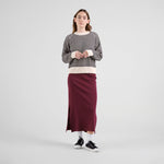 La falda Rib Skirt Kvarnvik Fig Red de Dedicated Brand combina un diseño estructurado con materiales sostenibles para crear una prenda atemporal. Confeccionada en 95 % algodón orgánico y 5 % elastano, el tejido canalé ofrece una textura suave que se adapta al cuerpo con elegancia y comodidad.