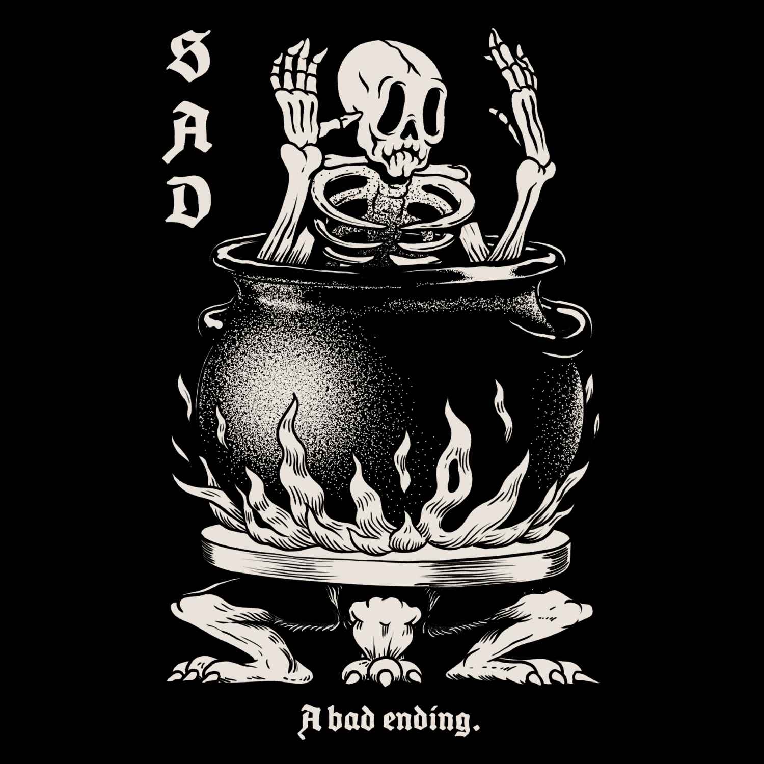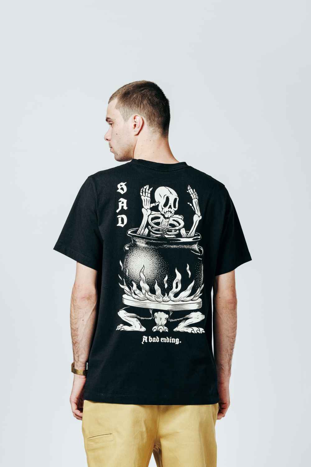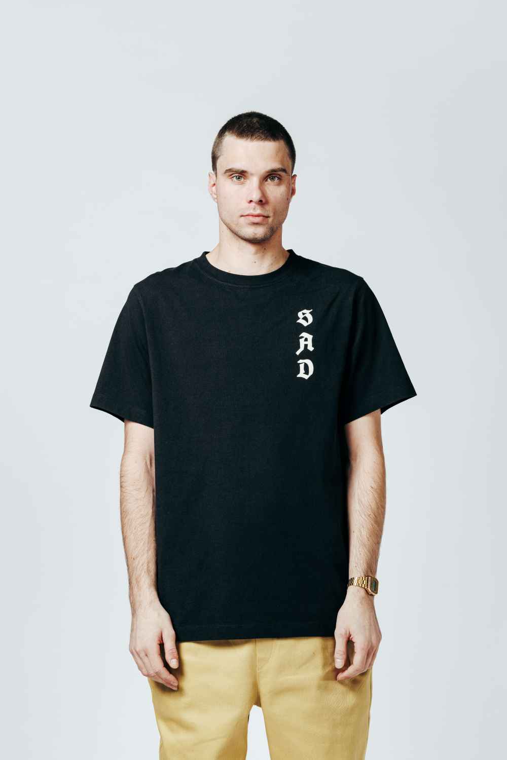 Camiseta clásica negra premium con diseño SAD de mcbess.