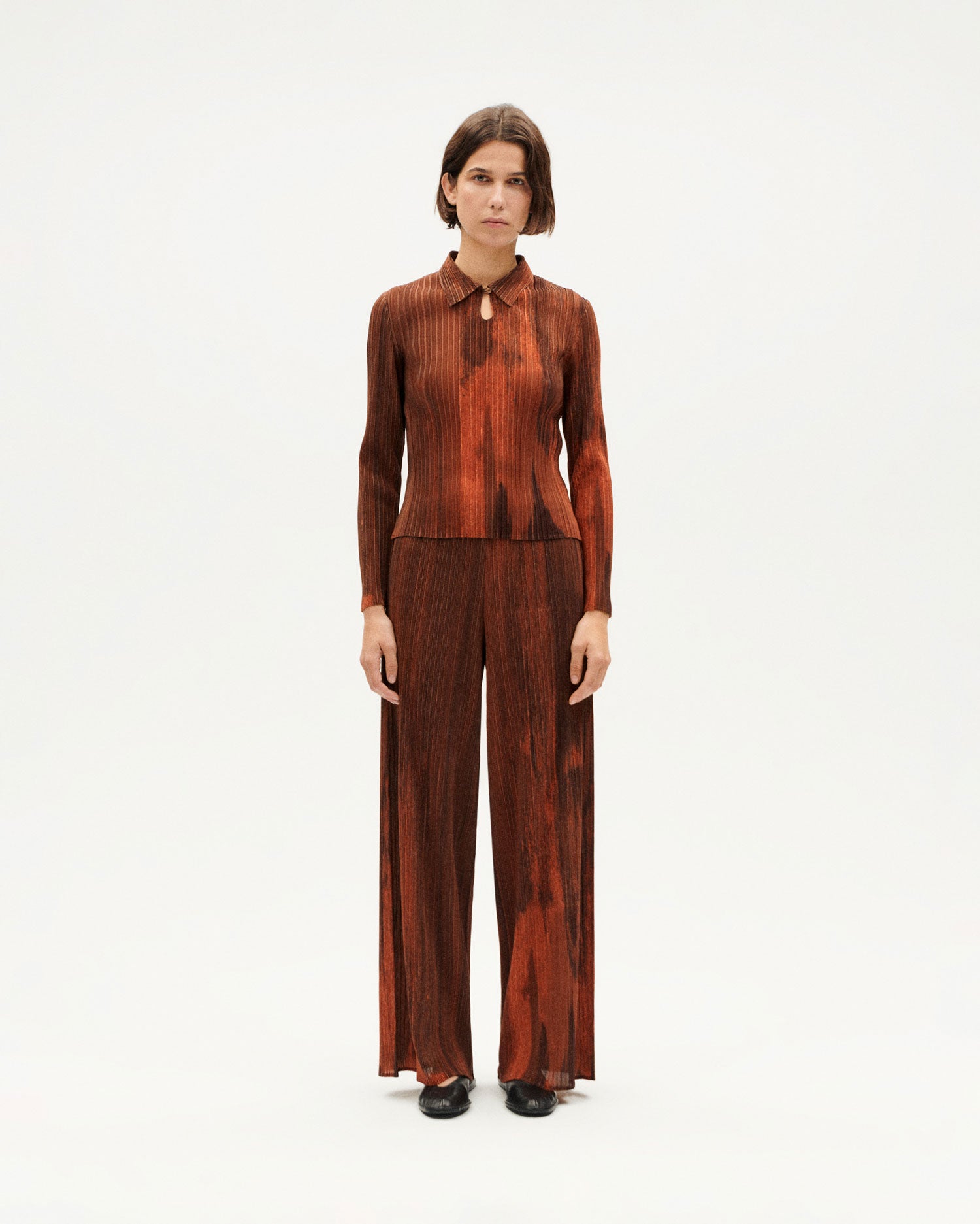 Pantalón relaxed plisado naranja Maro hecho de poliéster reciclado