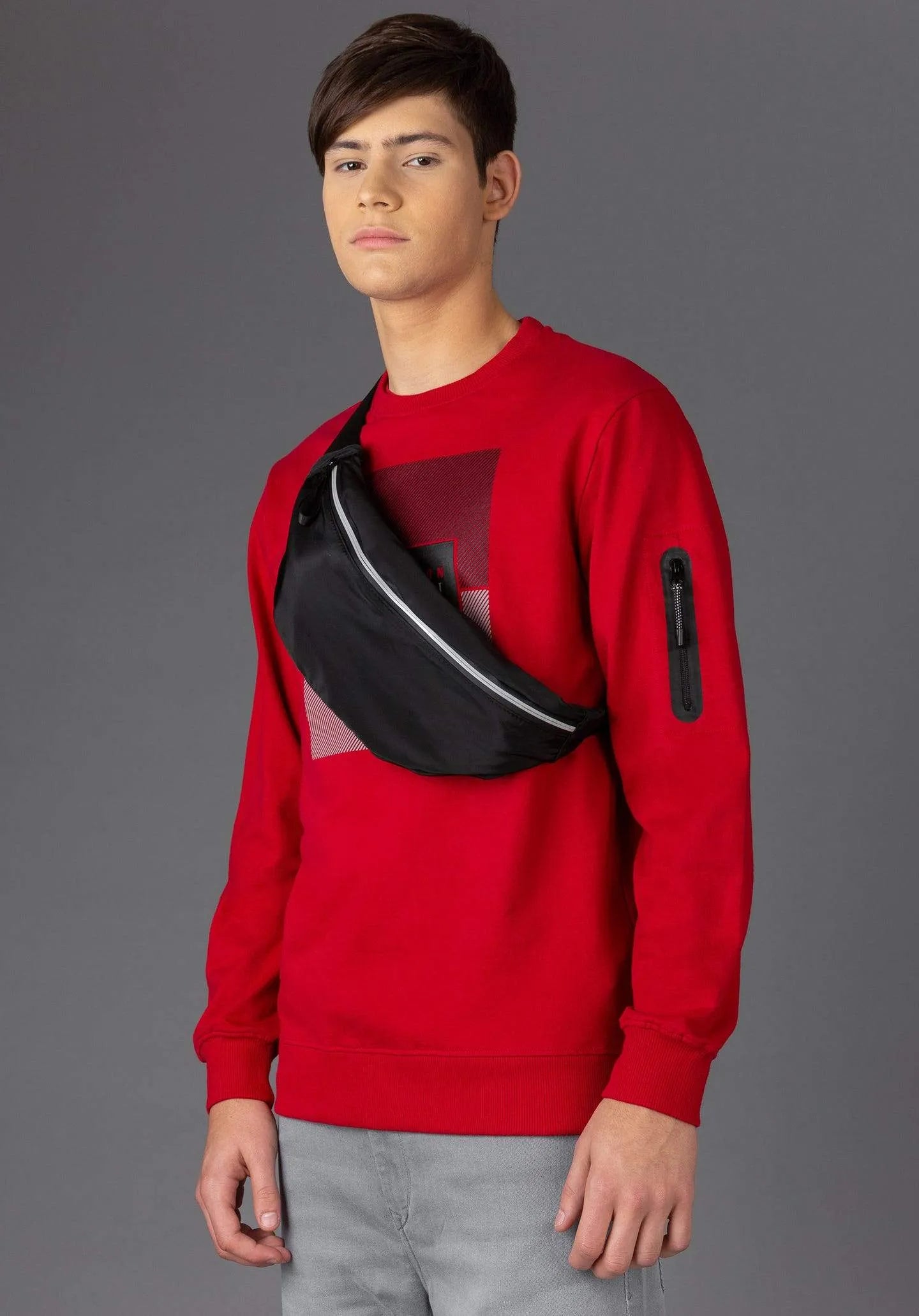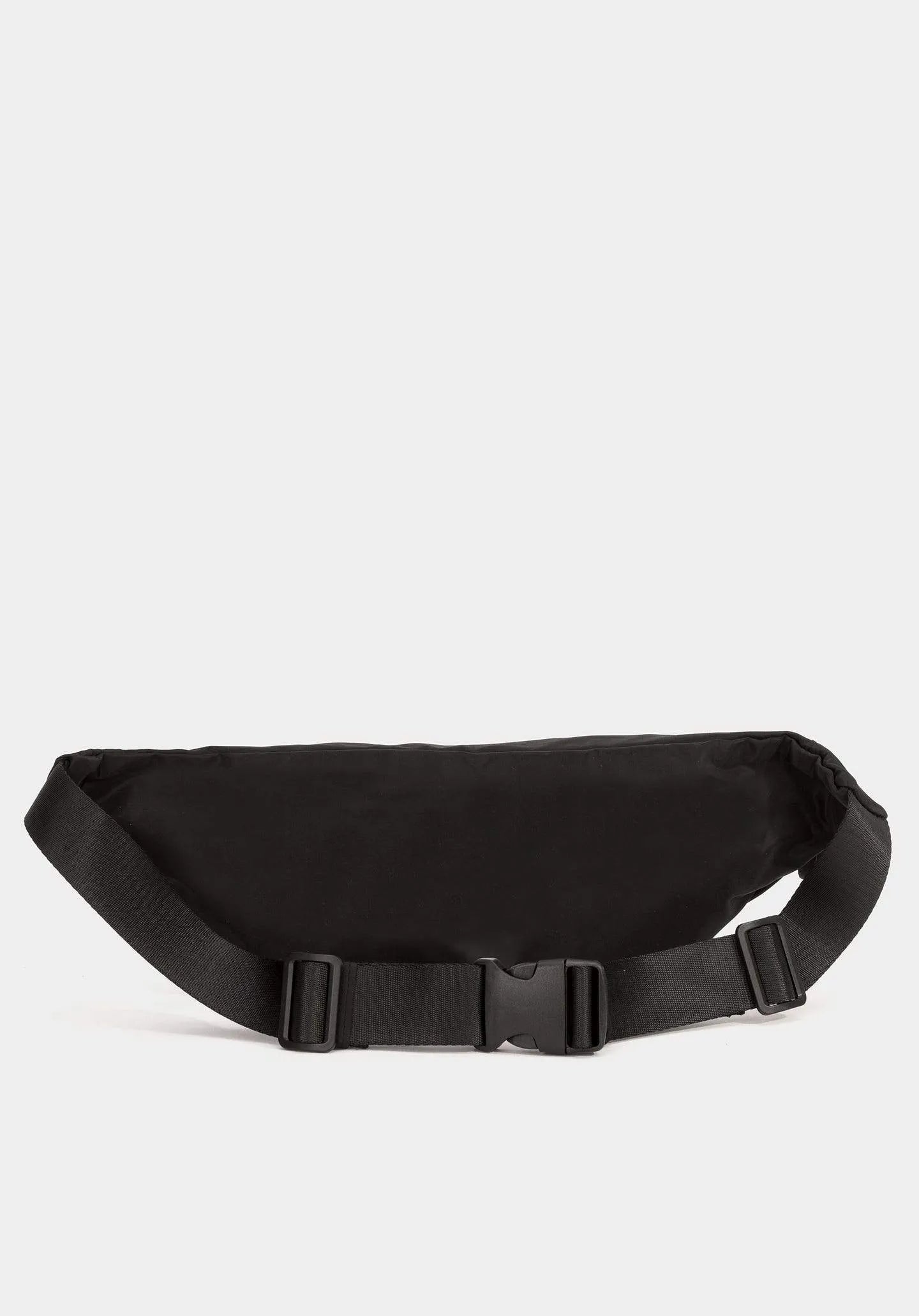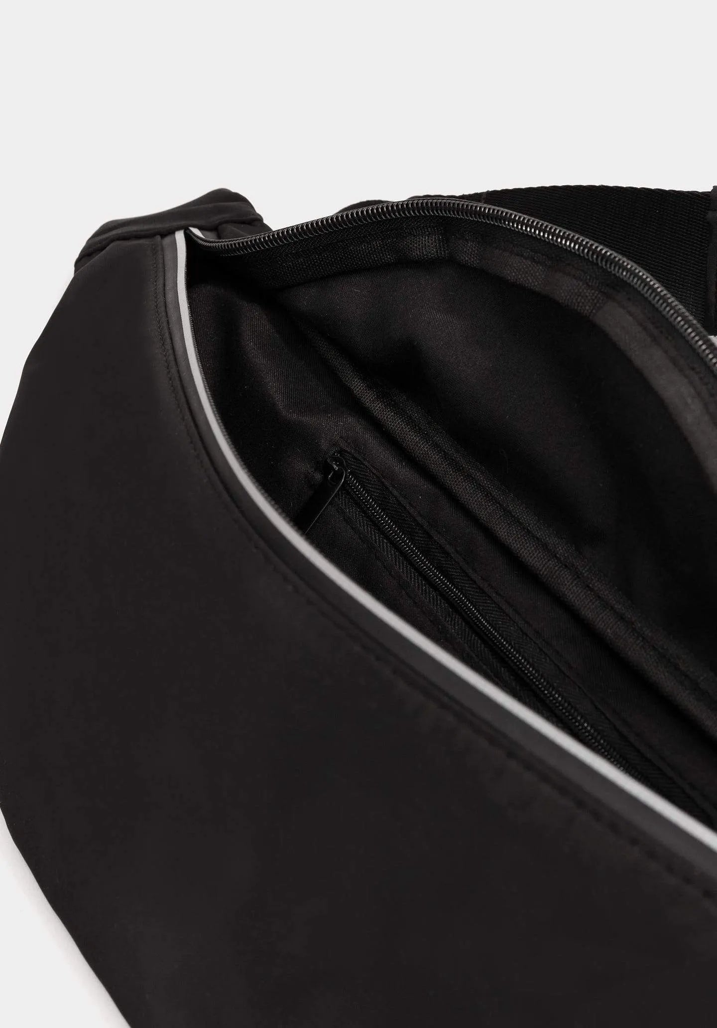 Riñonera negra con detalles reflectantes.