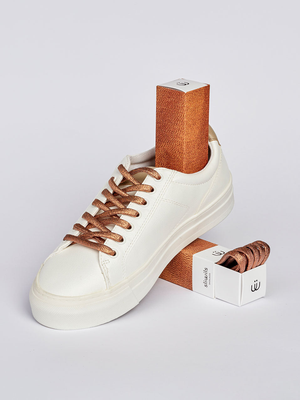 Los cordones Bronce Brillantes de Sliwils son una forma sencilla de dar un toque diferente a tus zapatillas. Su acabado metálico en tono bronce aporta personalidad sin resultar excesivo, convirtiéndose en un detalle sutil pero llamativo que eleva cualquier look urbano.