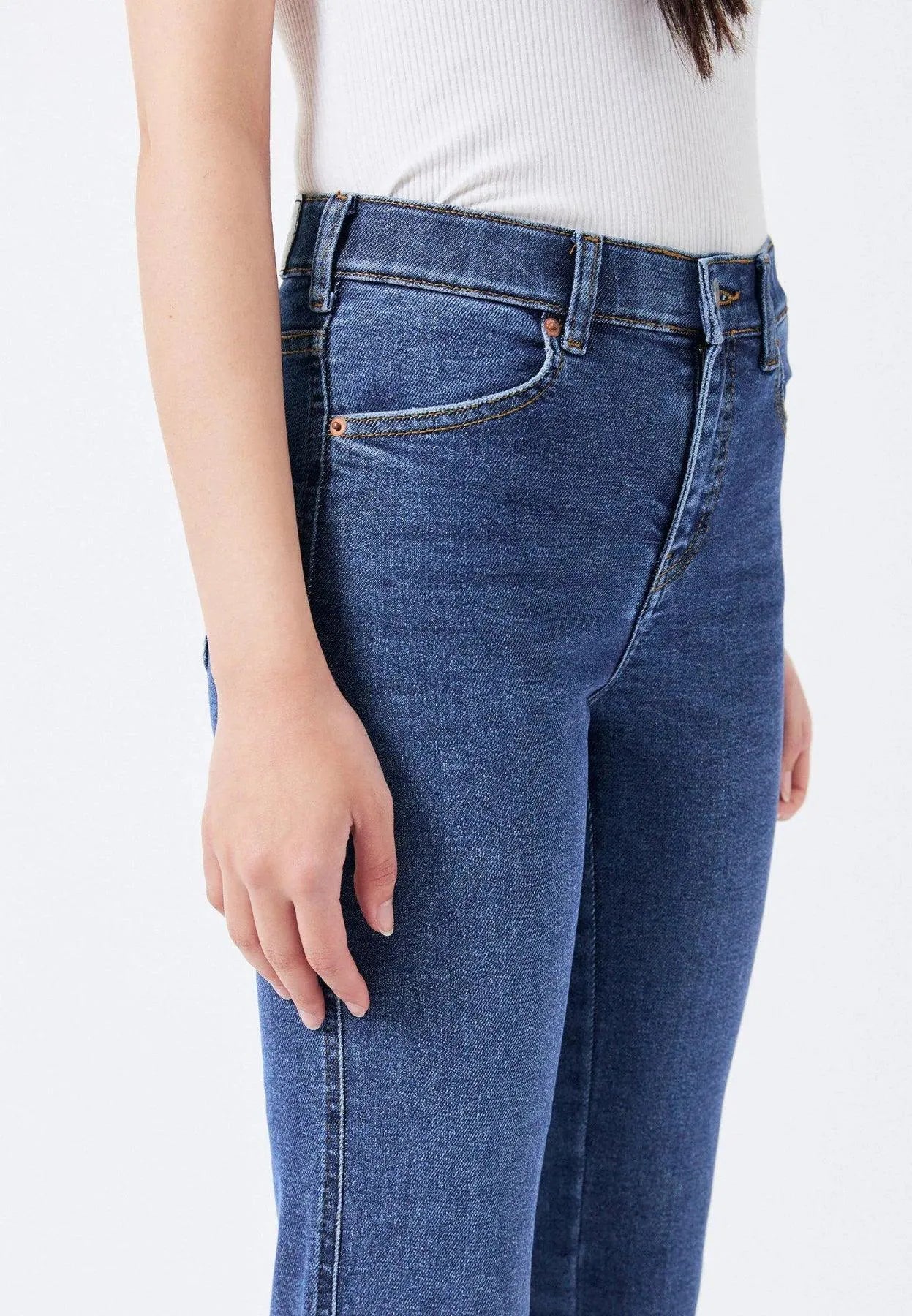 Pantalones vaqueros rectos y ajustados con cintura media, fabricados con un tejido vaquero muy elástico con un 80% de elasticidad para un ajuste perfecto y la máxima comodidad.