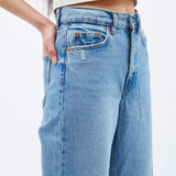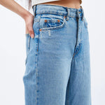 Corte estándar muy alto con pernera recta. Hecho para un ajuste ceñido en el asiento. Echo está hecho de tela de mezclilla 100% algodón.