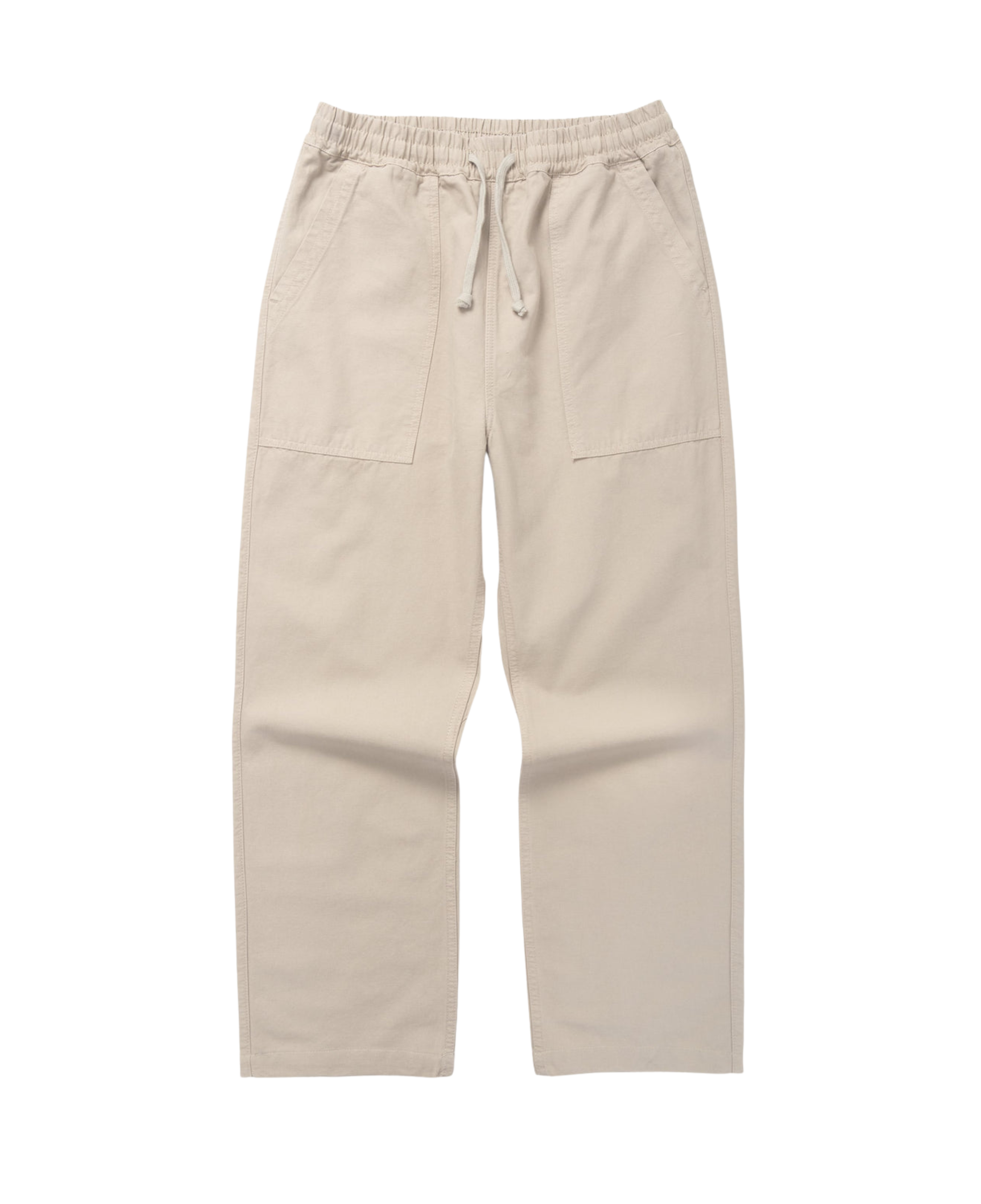 Presentan un corte de pierna recta y relajada (relaxed straight leg) que facilita el movimiento y aporta un aire casual-trabajo. La cintura es ajustable mediante cordón interno, lo que permite adaptar el ajuste con facilidad. Los bolsillos “fatigue” delanteros y los bolsillos traseros con etiqueta tejida completan el diseño utilitario.
