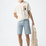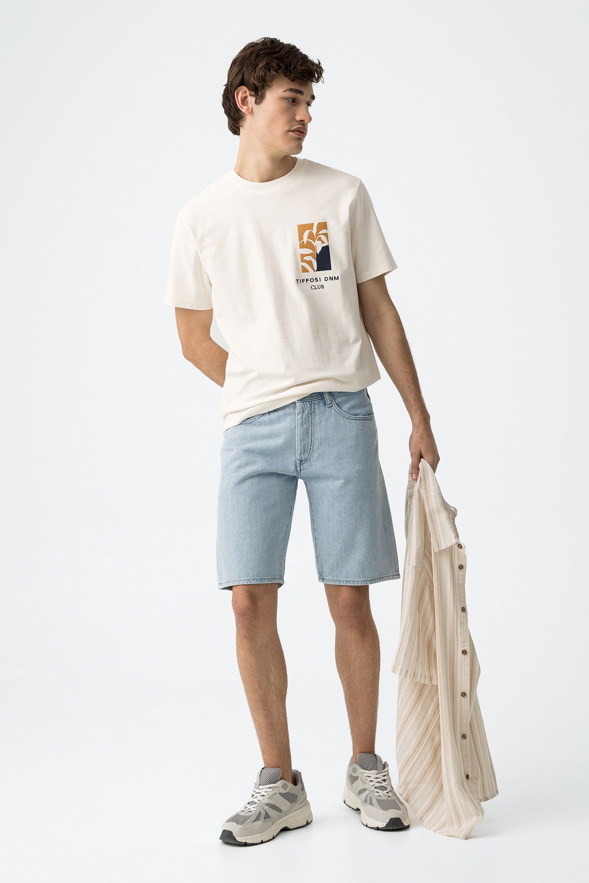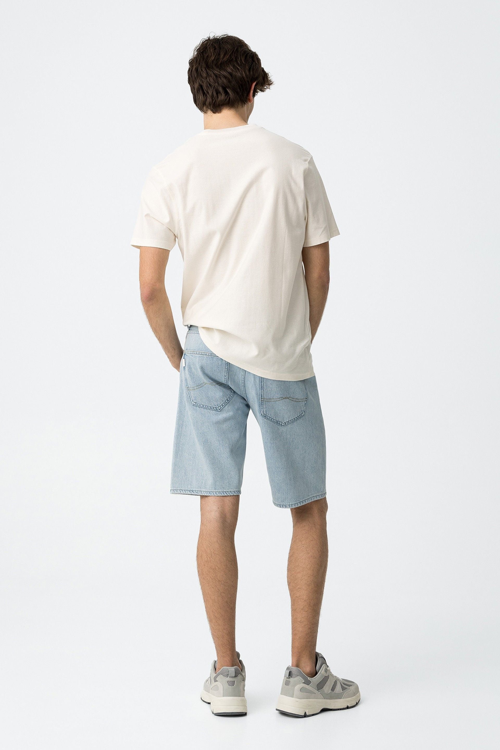 Short vaquero con cinco bolsillos. Cierre frontal con botones ocultos mediante tapeta y botón metálico.
