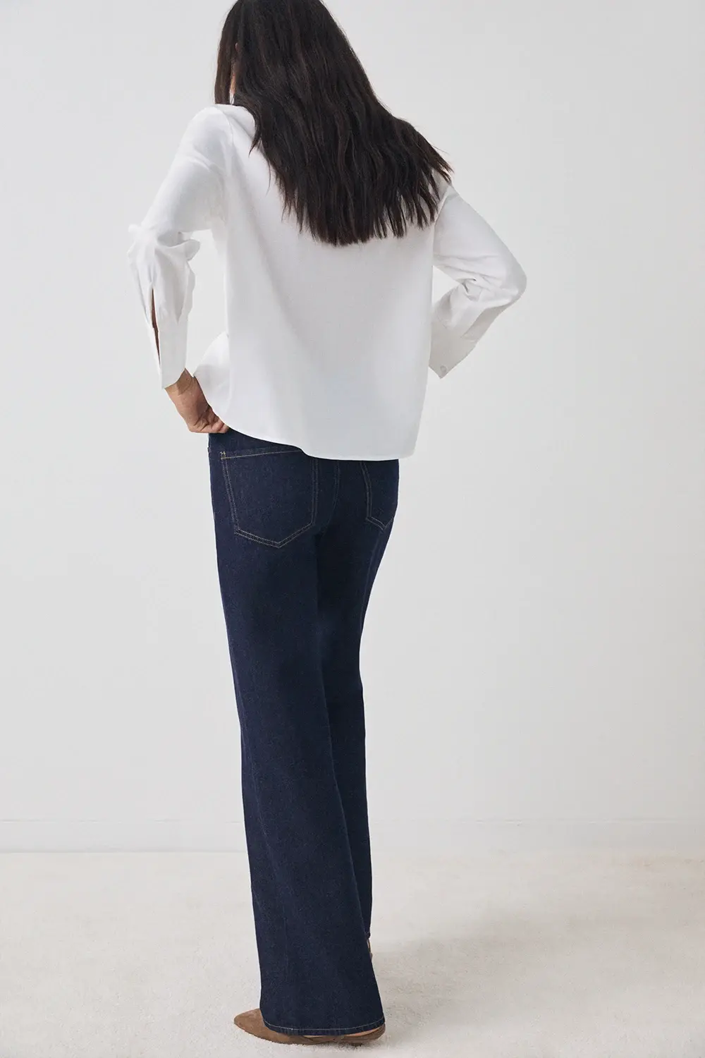 Los Jeans Phoenix en tono azul oscuro de eseOese combinan confort, estilo contemporáneo y detalles de calidad. Confeccionados en una mezcla de algodón, lyocell y lino que proporciona una textura fluida y natural. El corte es recto holgado (relaxed), con tiro medio y cinco bolsillos tipo clásico, lo que los hace ideales tanto para el uso diario como para combinaciones más estilizadas. El cierre mediante cremallera y botón asegura la funcionalidad, mientras que la sarga ligera aporta ligereza al conjunto. El color azul oscuro permite una gran versatilidad y combina fácilmente con camisetas básicas, jerséis o blazers ligeros.