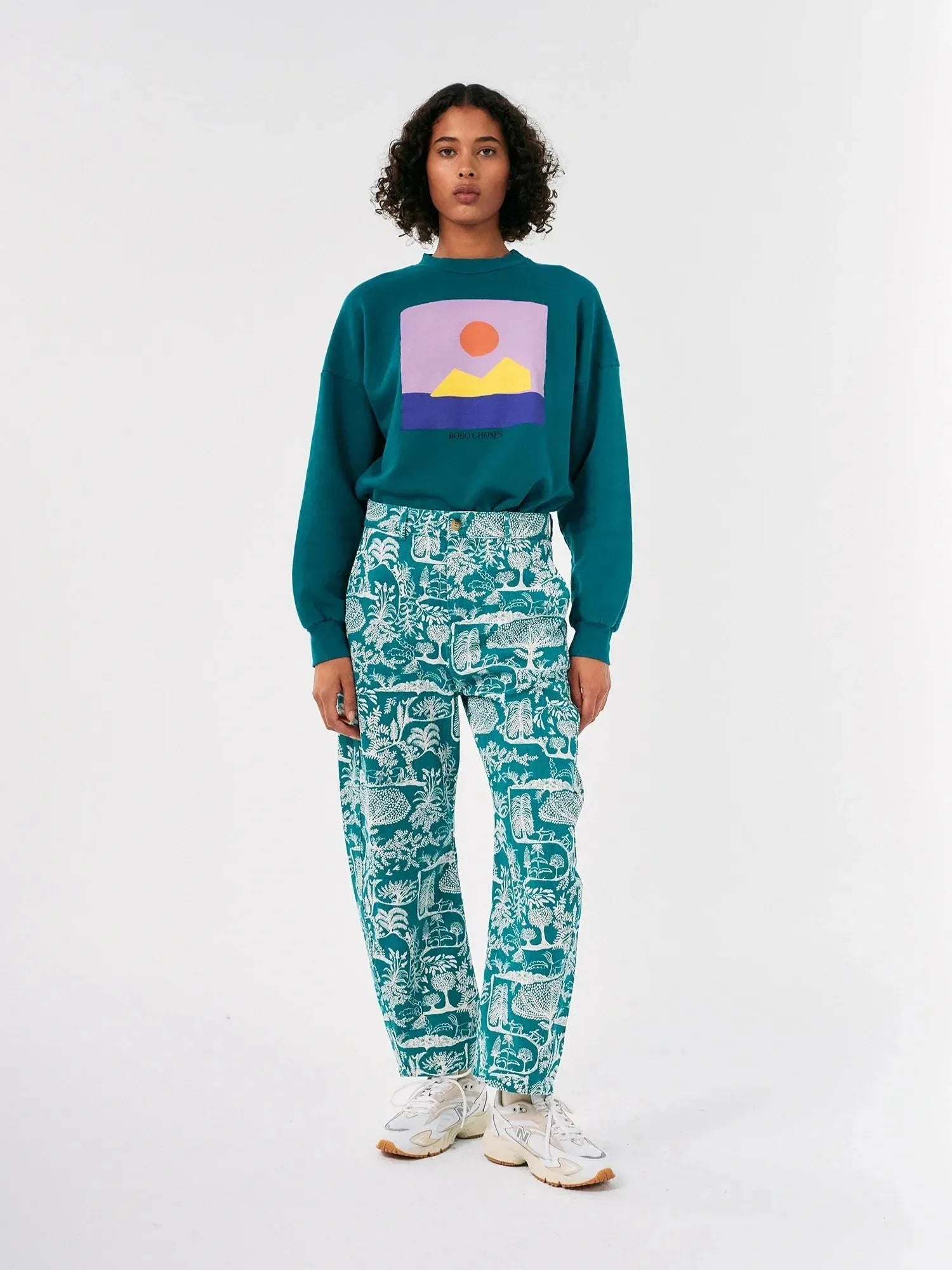 Añade diversión a tus conjuntos con los pantalones largos cónicos «Wonderland». Inspirados en los mundos mágicos con los que soñábamos de pequeños, estos pantalones presentan un intrincado estampado en tonos verdes que te permitirá mostrar tu personalidad allá donde vayas. Disfruta del día a día y de las ocasiones festivas con una comodidad y una libertad de movimiento inigualables.