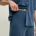 Pantalón wide leg de color azul marino. Tejido de punto fluido con mezcla de modal, suave al tacto y con caída natural. De tiro alto y pierna ancha. Cintura elástica. Longitud interior de la pierna: 78 cm (talla S). Longitud interior de la pierna: 78 cm (talla S).