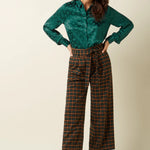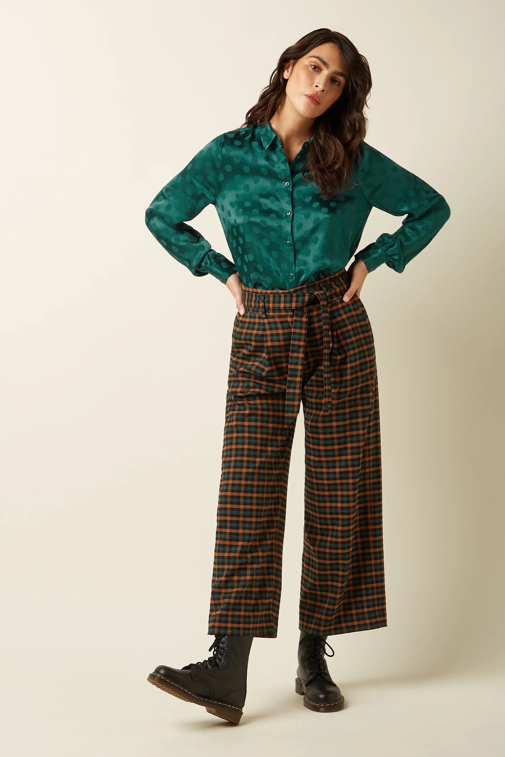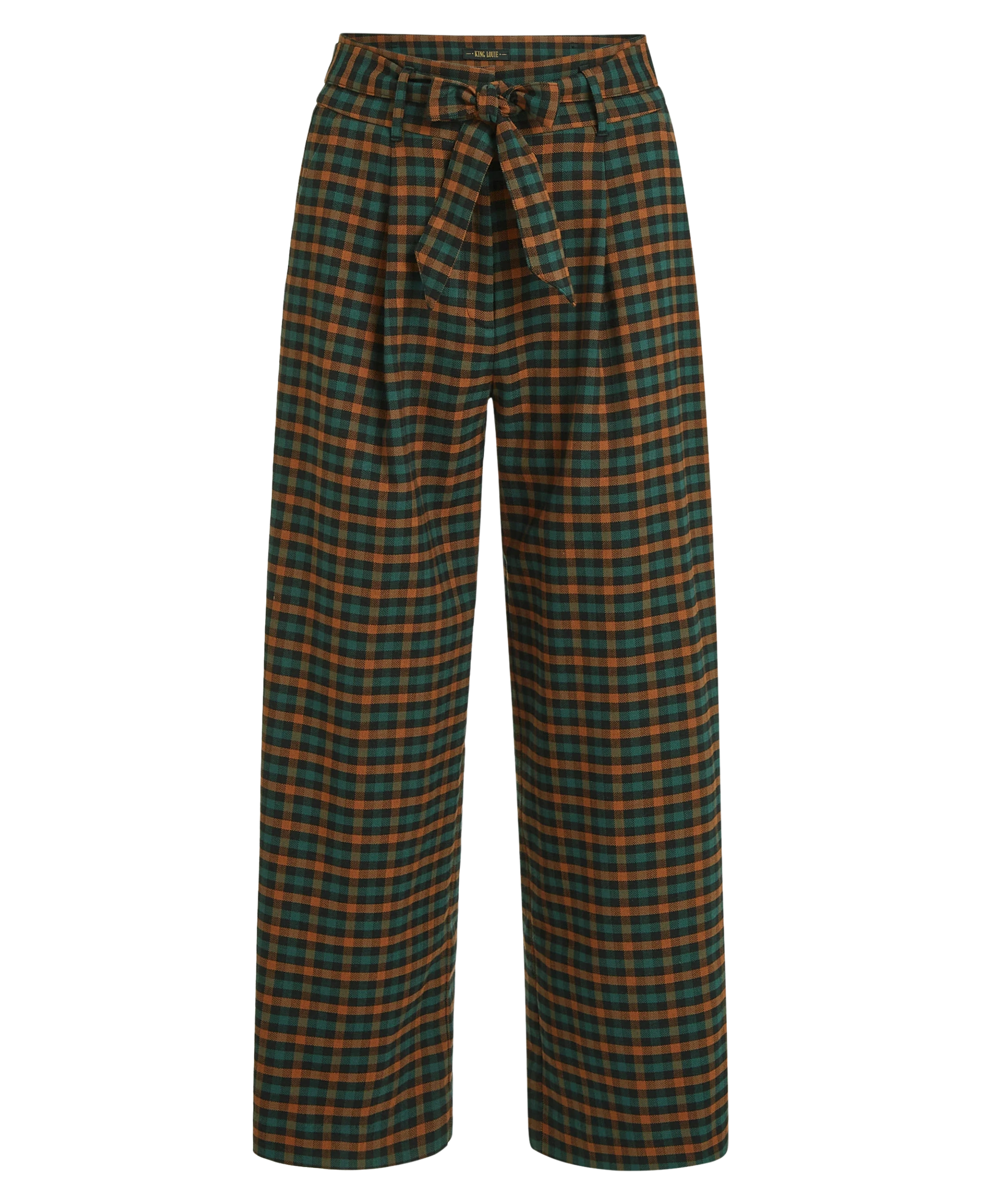Descubre un diseño refinado con carácter gracias a estos pantalones de la colección Brook Check. Fabricados en tejido tejido de poliéster con rayón y comodidad stretch, presentan una cintura de tiro medio y un cinturón de lazo que aporta un detalle distintivo. El patrón de cuadros evoca un aire clásico mientras la silueta ancha y cropped mantiene un estilo moderno. Cierre frontal con cremallera y gancho para un acabado pulido.