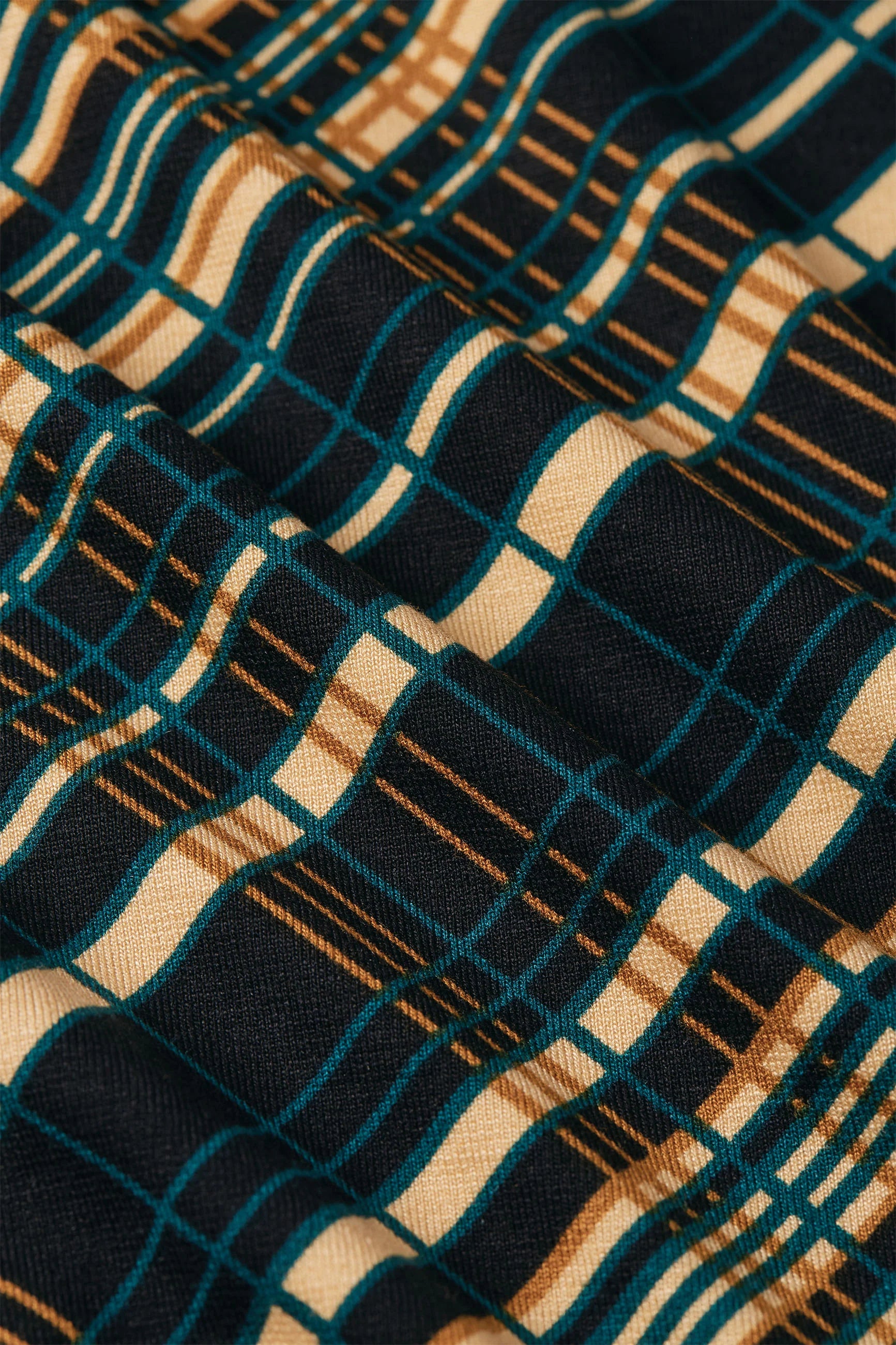 • Estampado gráfico llamativo sobre fondo negro.