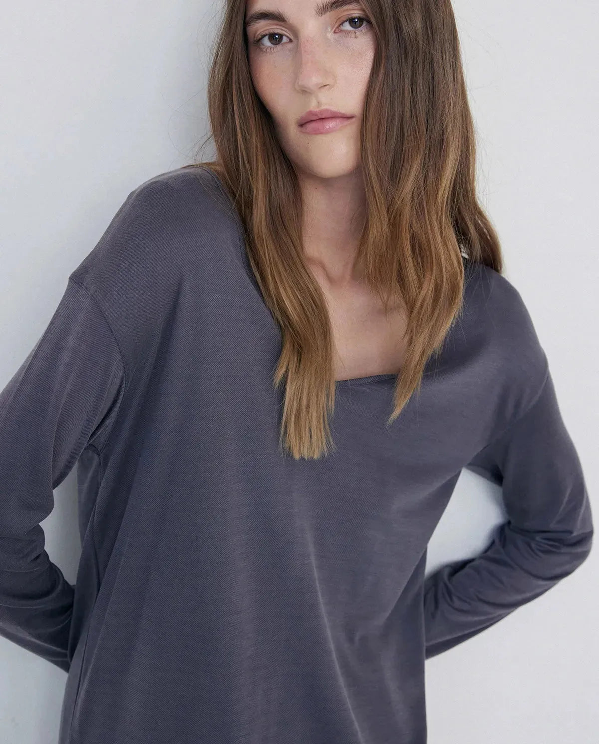 Camiseta Fluida YERSE Vera Escote Pico Antracita