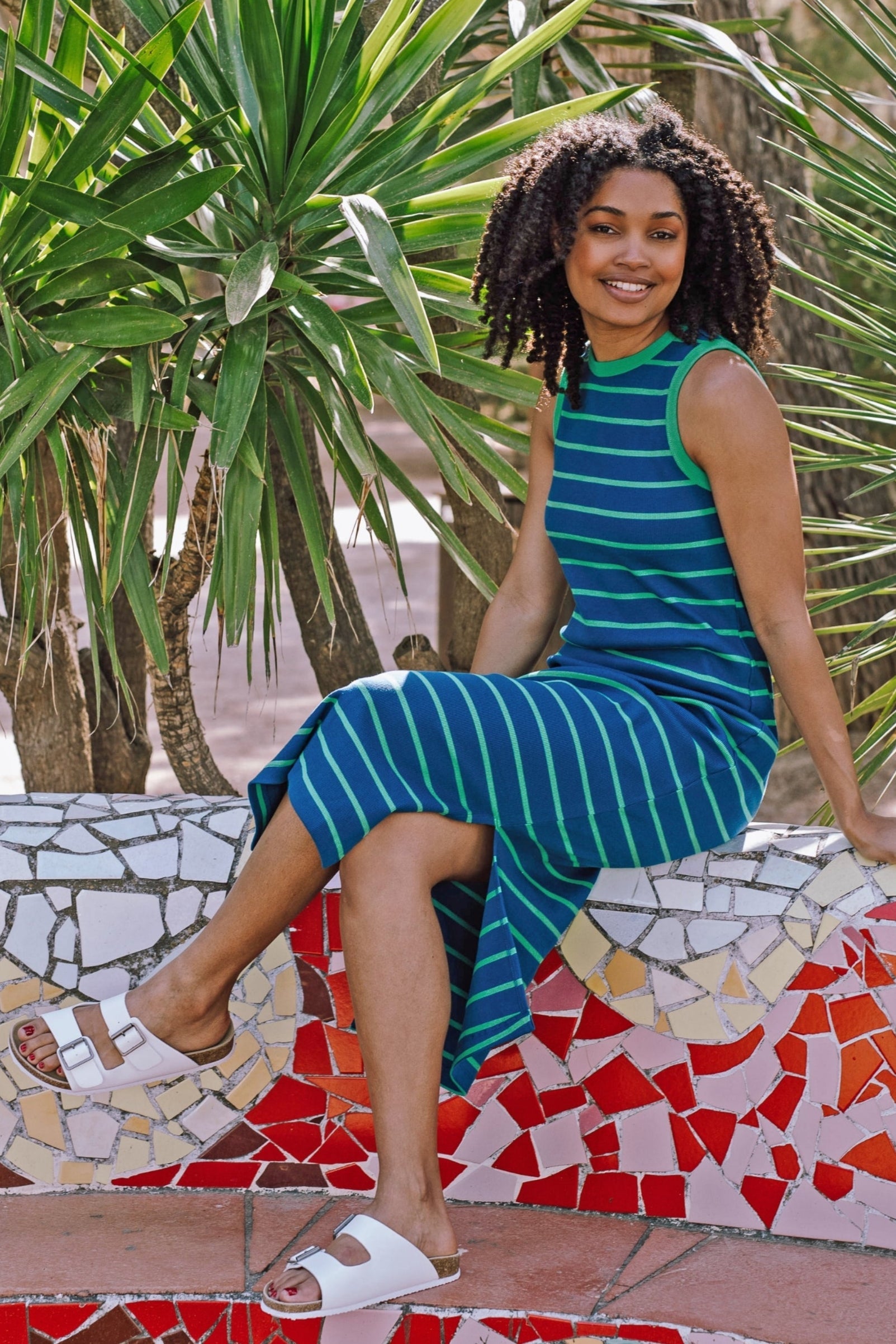 Vestido SUGARHILL Britanny Midi Blue Green Stripes
