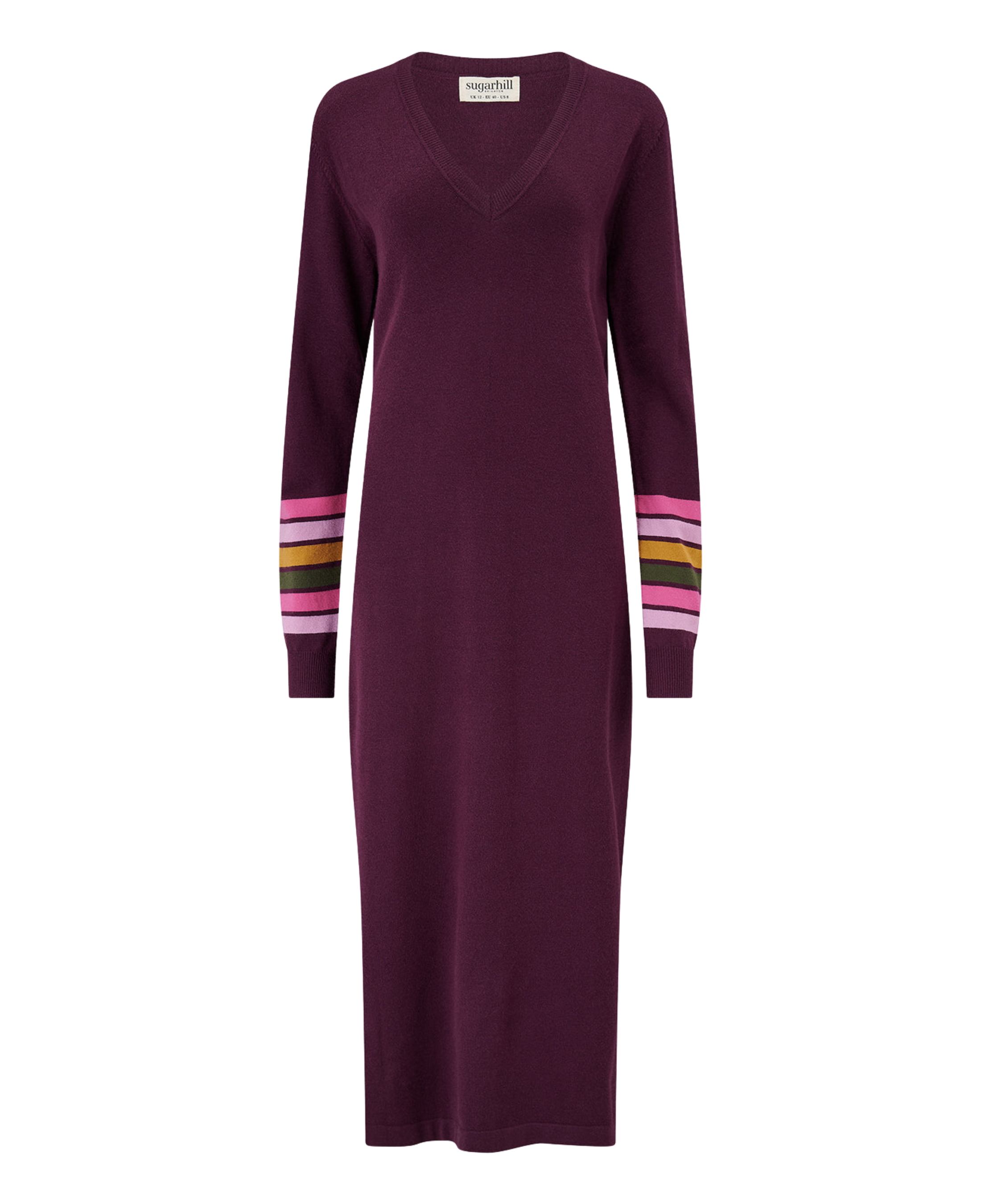 Vestido SUGARHILL Dania Burgundy, Sleeve Stripes