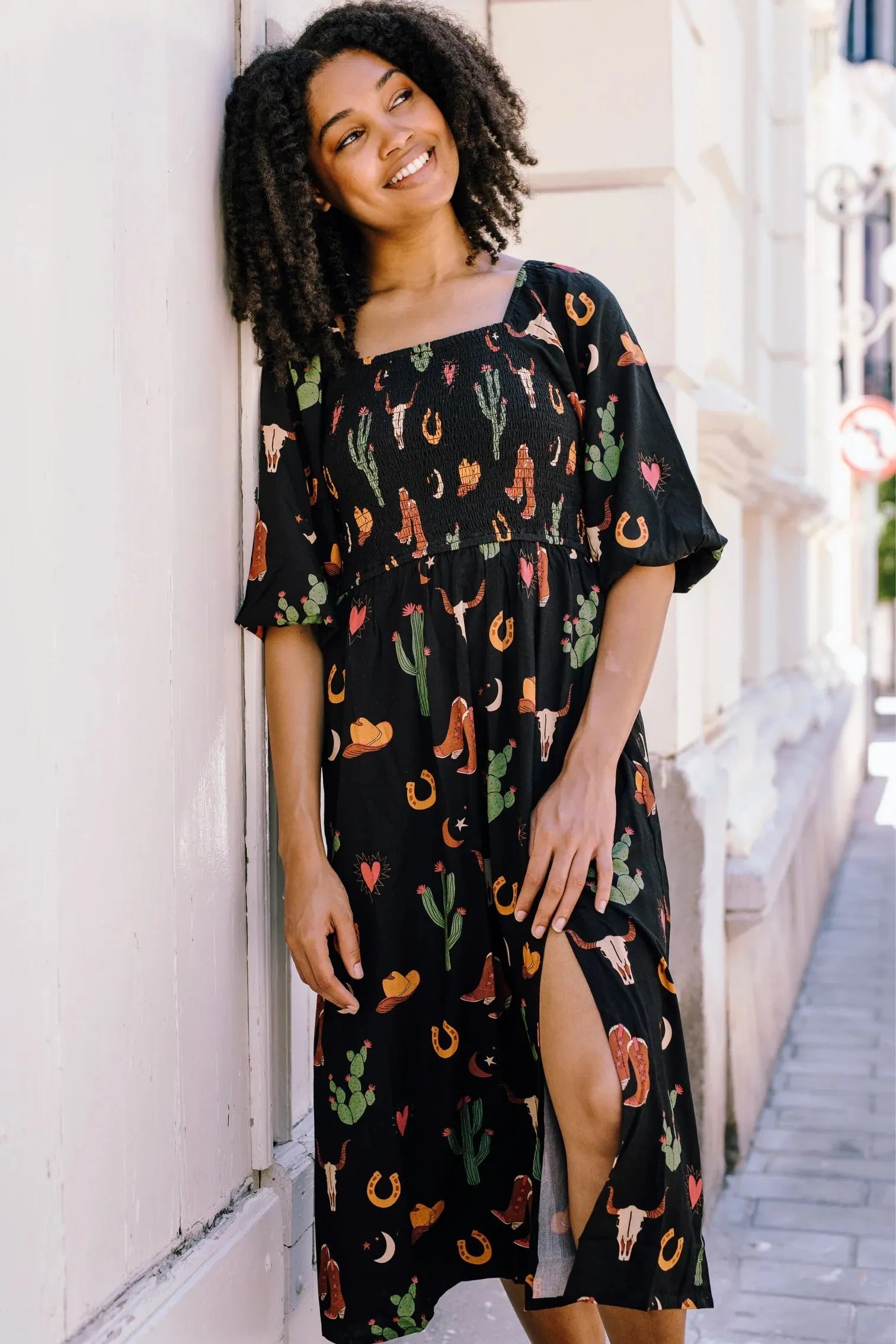 Vestido SUGARHILL Zinnia Shirred Midi Black Cowgirl