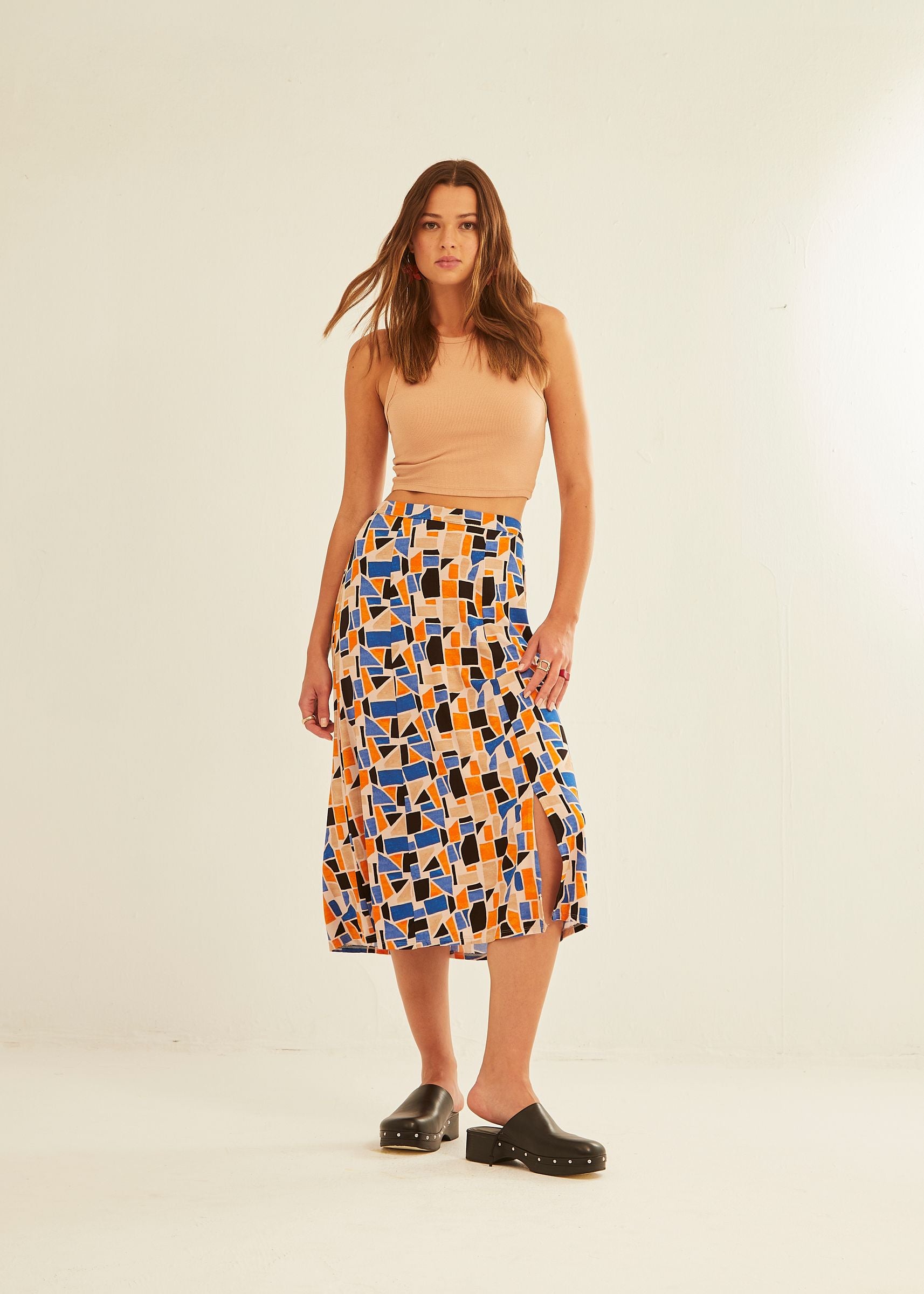 SKU: 2515044-402 FALDA MIDI BLUE MOSAIC S