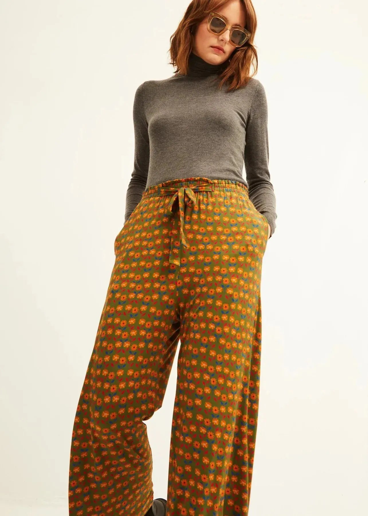 Pantalón XANTIK Lazo Cintura Green Folklore Flowers