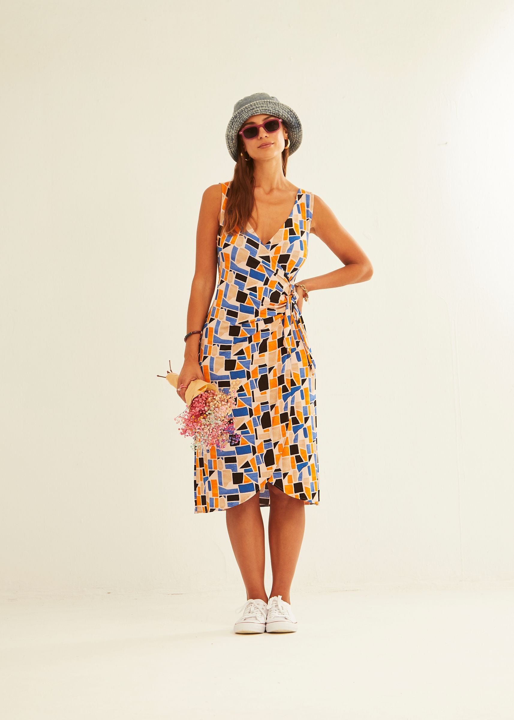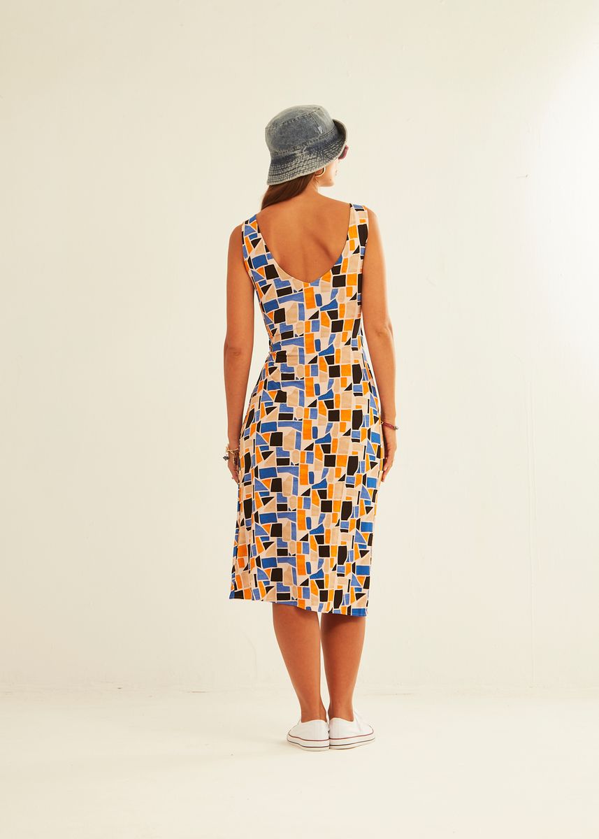 Vestido XANTIK Lazo Cintura Blue Mosaic