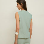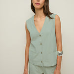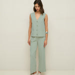 Chaleco de algodón orgánico. Corte recto y estilo minimalista en tono verde pastel. Diseño sin mangas con escote en pico y cierre con botones delanteros. Detalle bolsillos de vivo decorativos. Longitud desde el hombro: 58 cm (talla S).