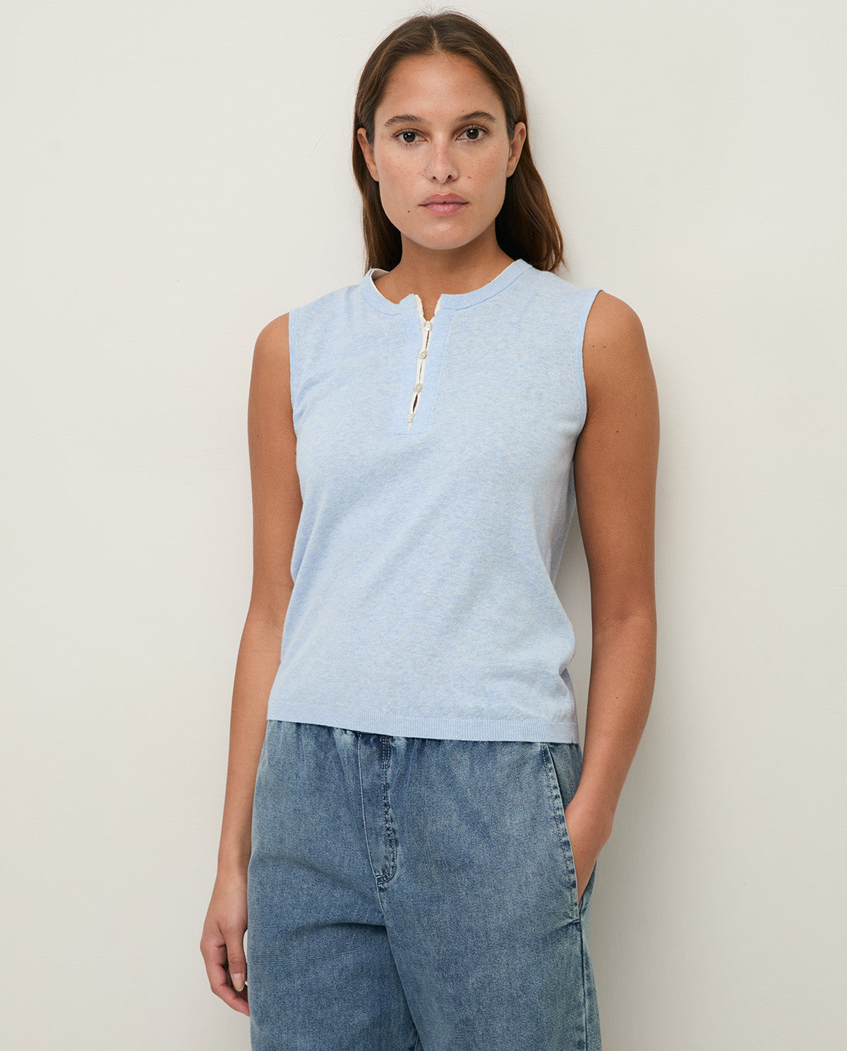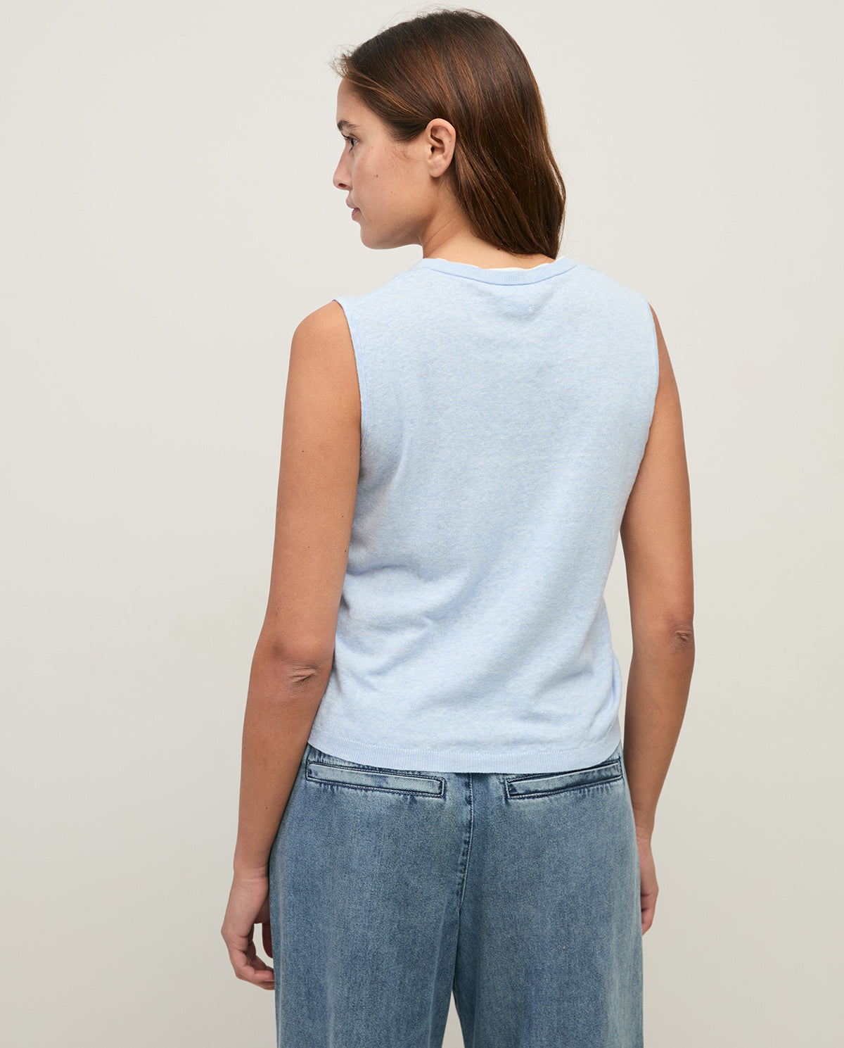 44 % algodón, 36 % lino, 20 % poliéster reciclado. Contiene partes no textiles de origen animal.