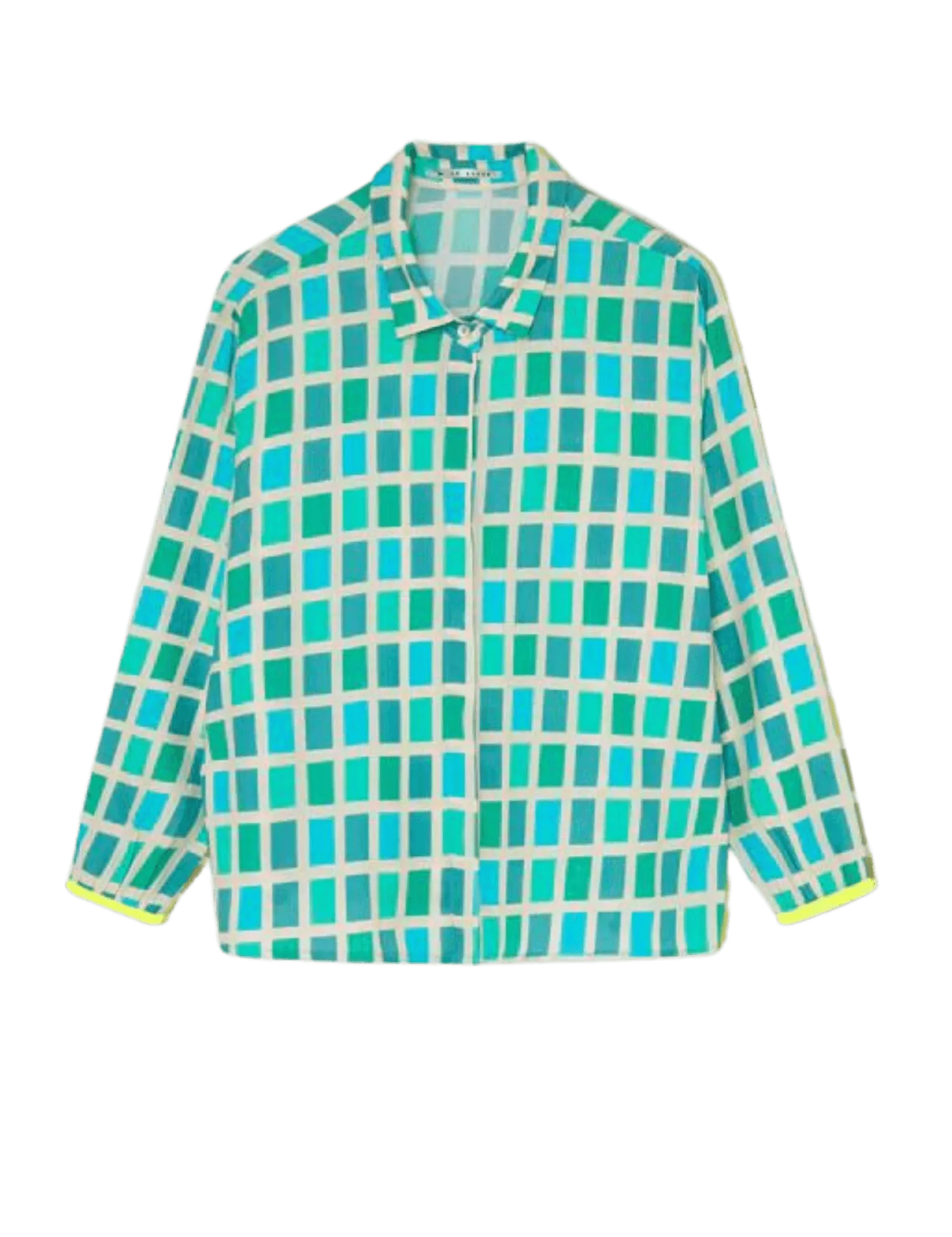 DrBloom Bluse Flocken bedruckt Pantone Türkis