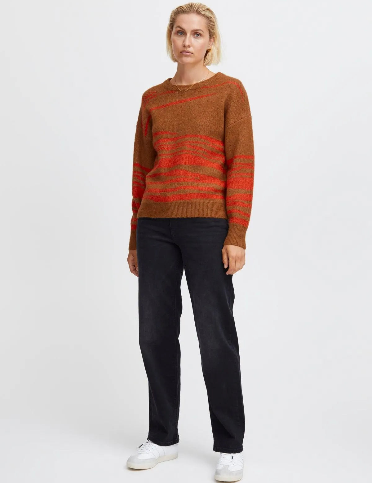 Gestreifter Damenpullover ICHI Mafa Chateau Rose