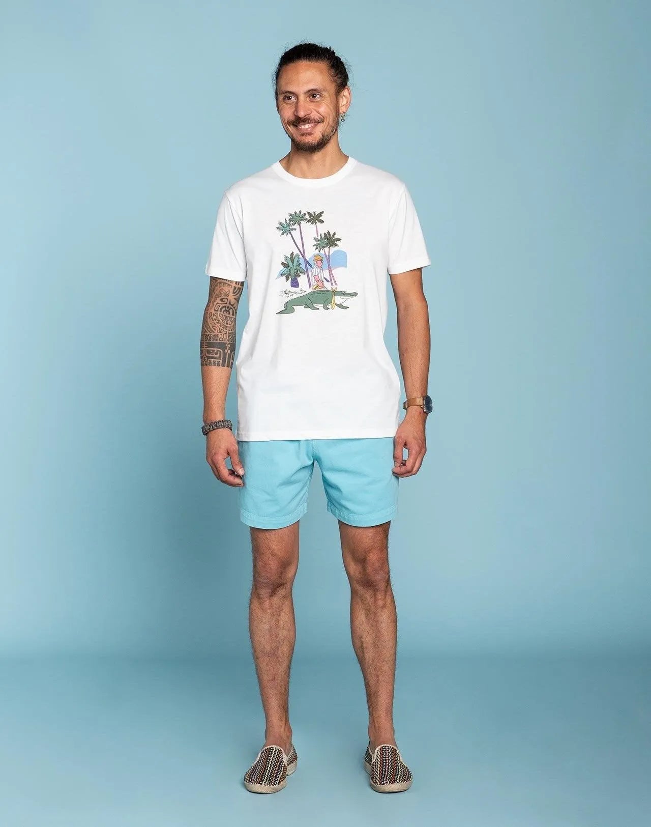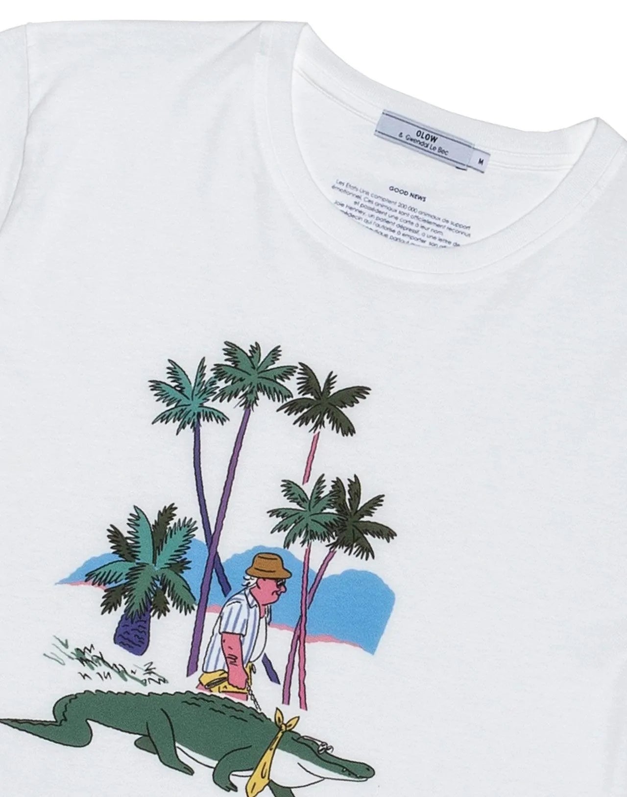 T-Shirt aus Bio-Baumwolle in rohen Farben. Gerader Schnitt mit kurzen Ärmeln, Rundhalsausschnitt, Alligatordruck und gerippten Abschlüssen an Ausschnitt, Ärmeln und Saum des Kleidungsstücks. Zögern Sie nicht, dieses wunderschöne, von Olow Paris signierte Hemd zu adoptieren. Es lässt sich leicht mit Jeans und einem Paar Turnschuhen für einen lässigen Look tragen.
